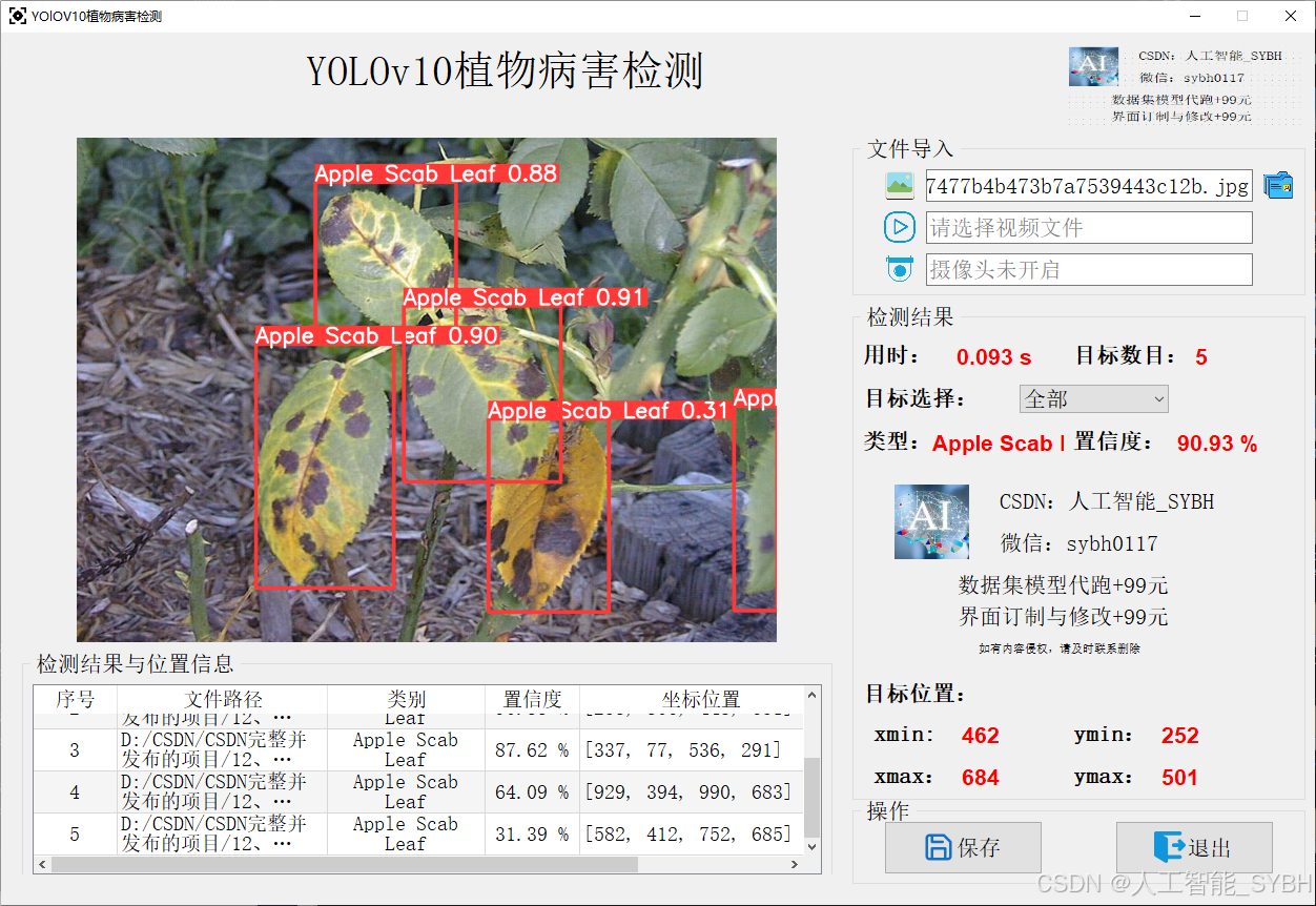 本文基于YOLOv10深度学习框架,通过2255张图片,训练了一个进行火焰烟雾的目标检测模型。并基于此模型开发了一款带UI界面的植物病害检测系统,可用于实时检测场景中的植物,更方便进行功能的展示。该系统是基于python与PyQT5开发的,支持图片、视频以及摄像头进行实时目标检测,并保存检测结果。