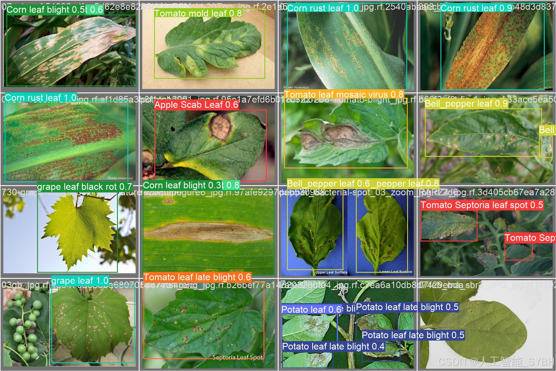 总体而言,本数据集经过精心准备和处理,旨在为研究人员和从业者提供坚实的基础,以支持深度学习模型的训练和评估。借助本数据集的使用,我们可以深入研究 YOLOv10 等先进目标检测算法在植物病害检测任务中的应用潜力,并期望在实际应用中实现更高的检测准确性和效率。