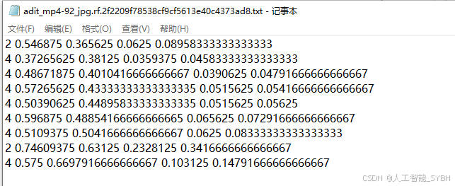 转换格式:将标注的数据转换为YOLO格式。YOLO标注格式为每行: