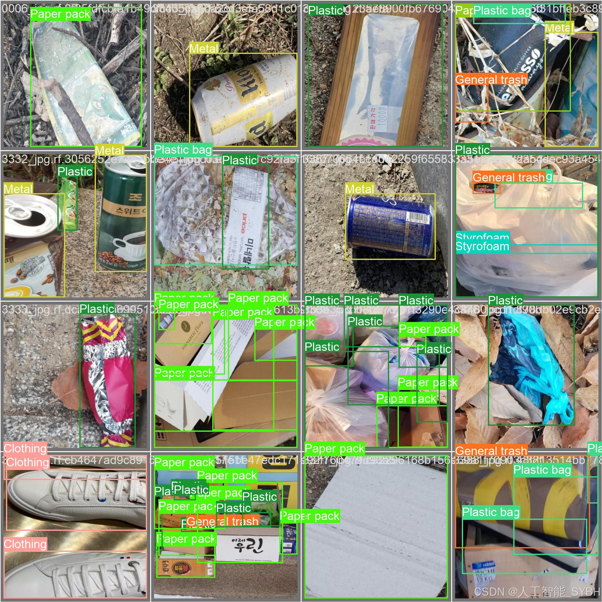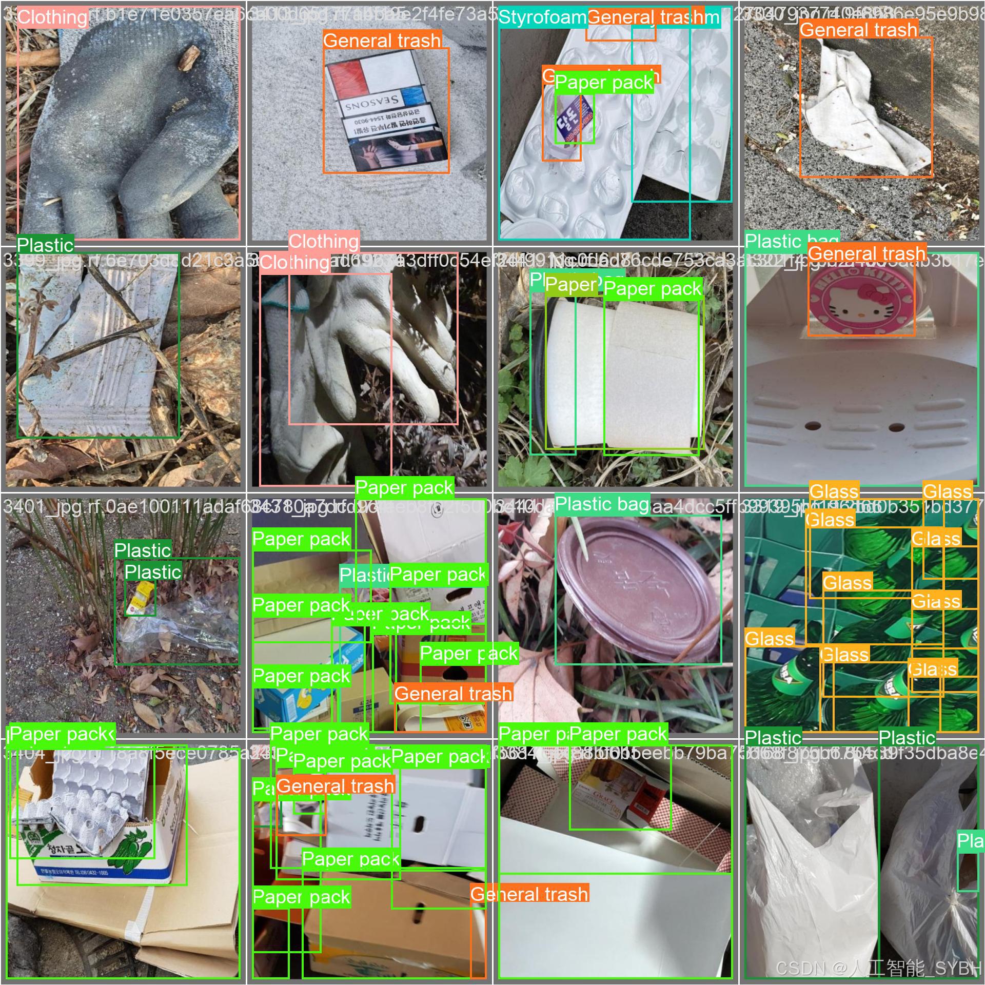 类别标签:Battery、Clothing、General trash、Glass、Metal、Paper pack、Paper、Plastic bag、Plastic、Styrofoam
