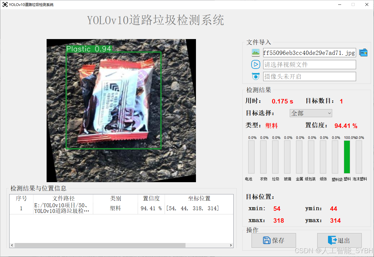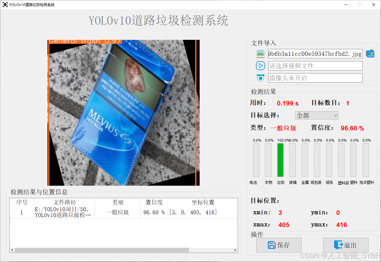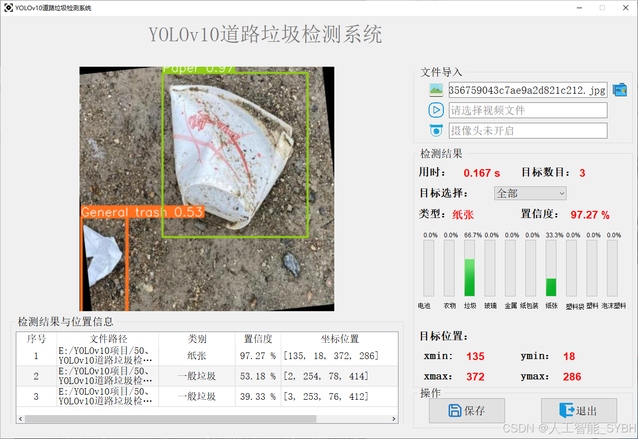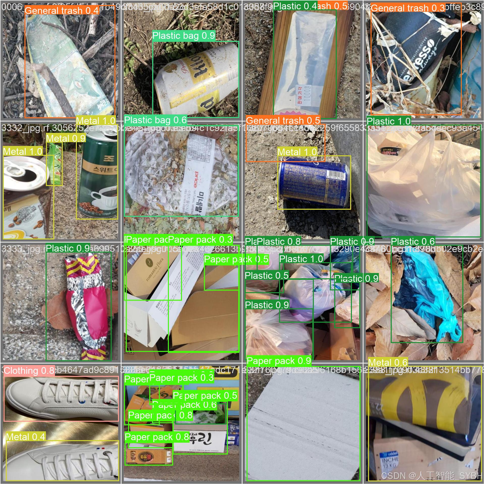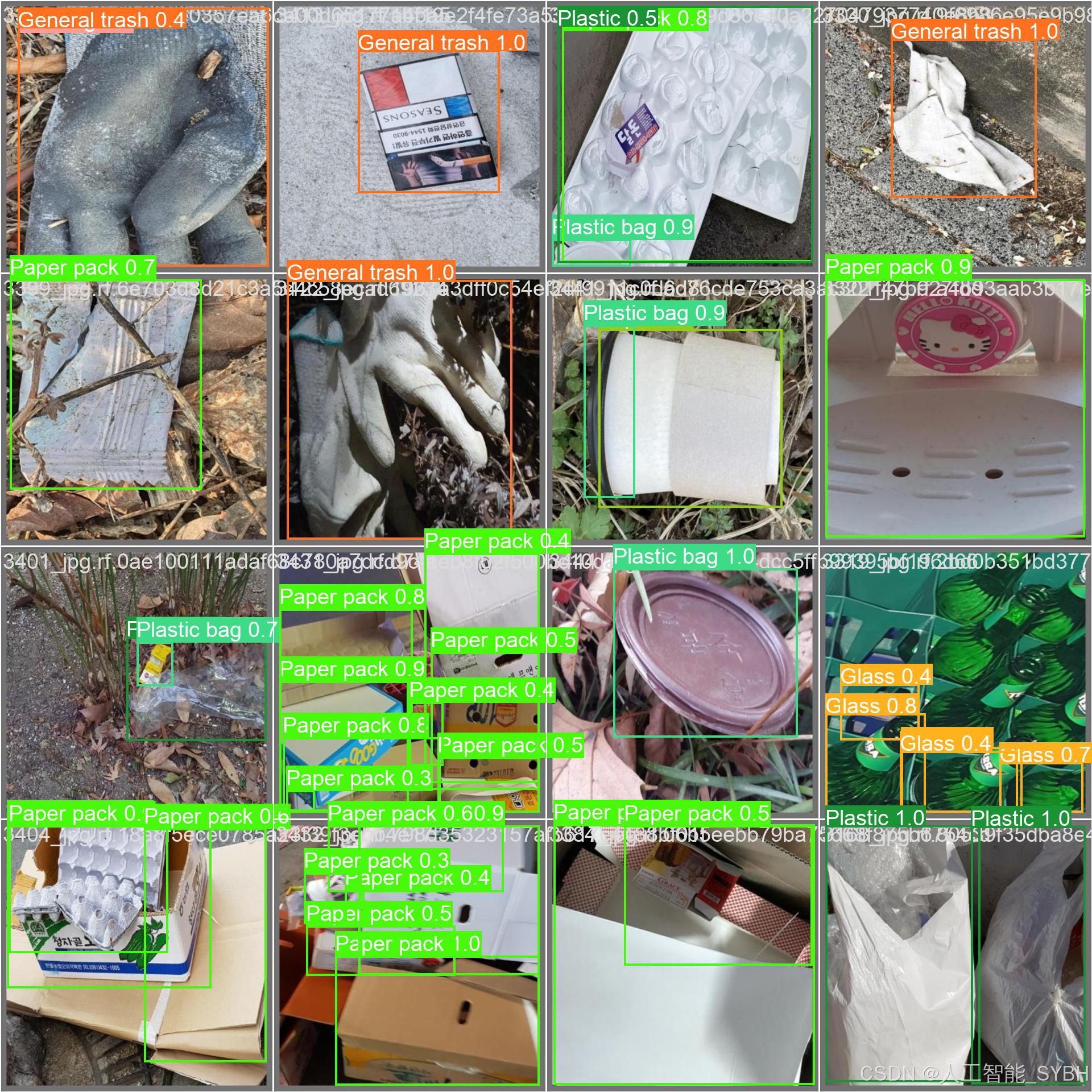 分类与定位:系统不仅能识别垃圾类型,还能给出垃圾的位置信息(边界框)。