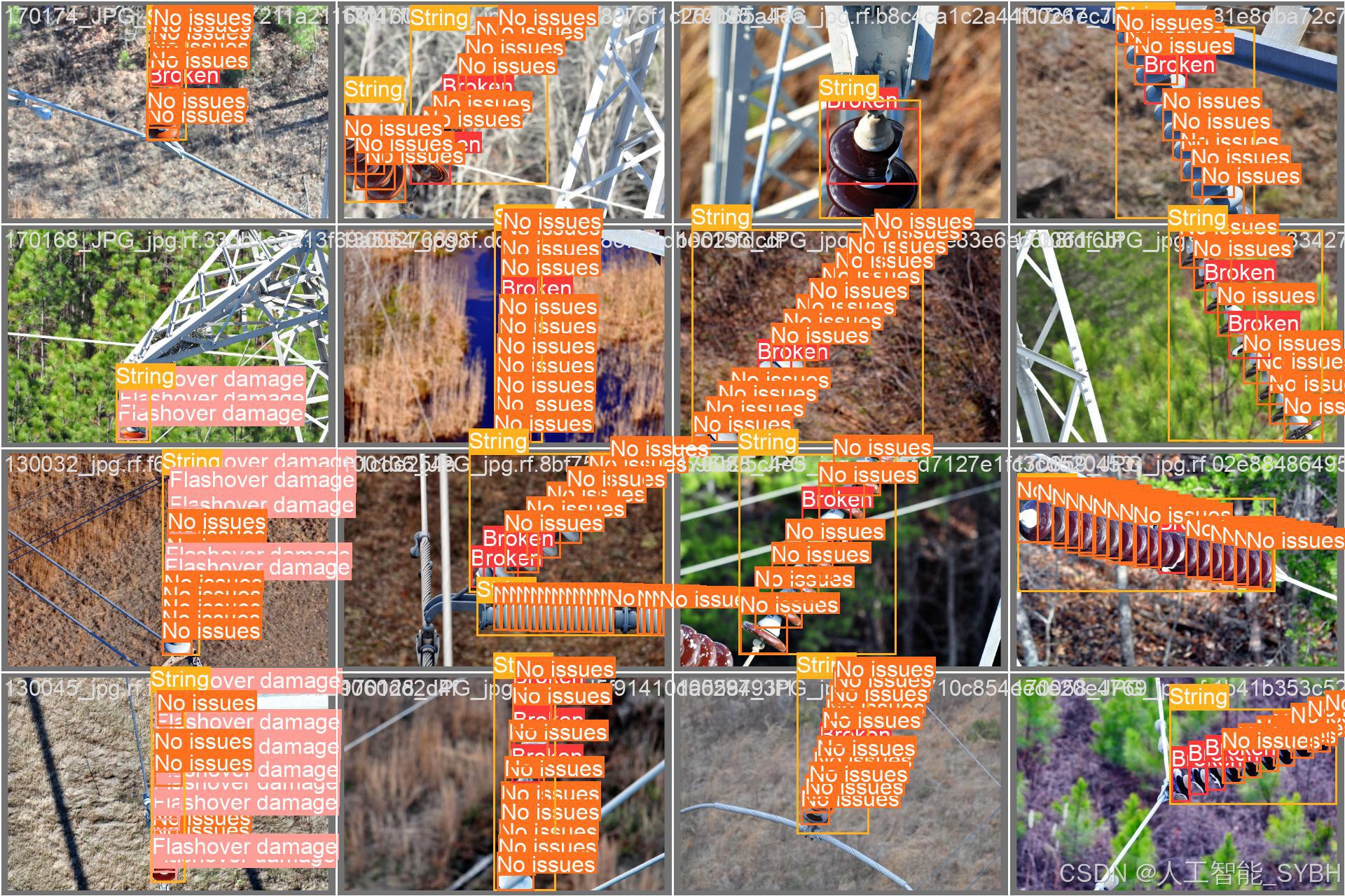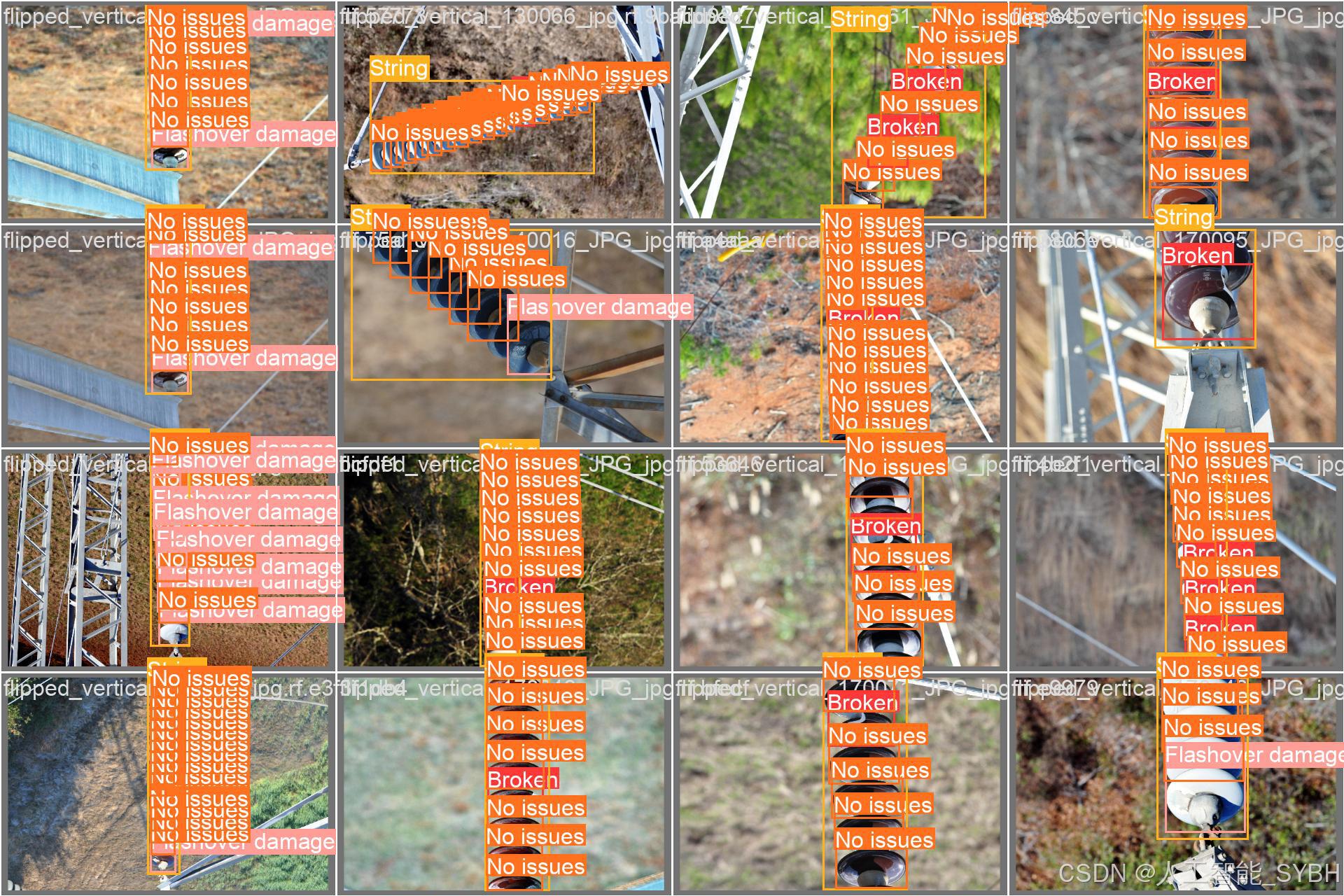 本项目的数据集包含4类绝缘子状态标签:Broken(破裂)、Flashover damage(闪络损坏)、No issues(无问题)、String(绝缘子串)。数据集分为训练集、验证集和测试集,具体数量如下: