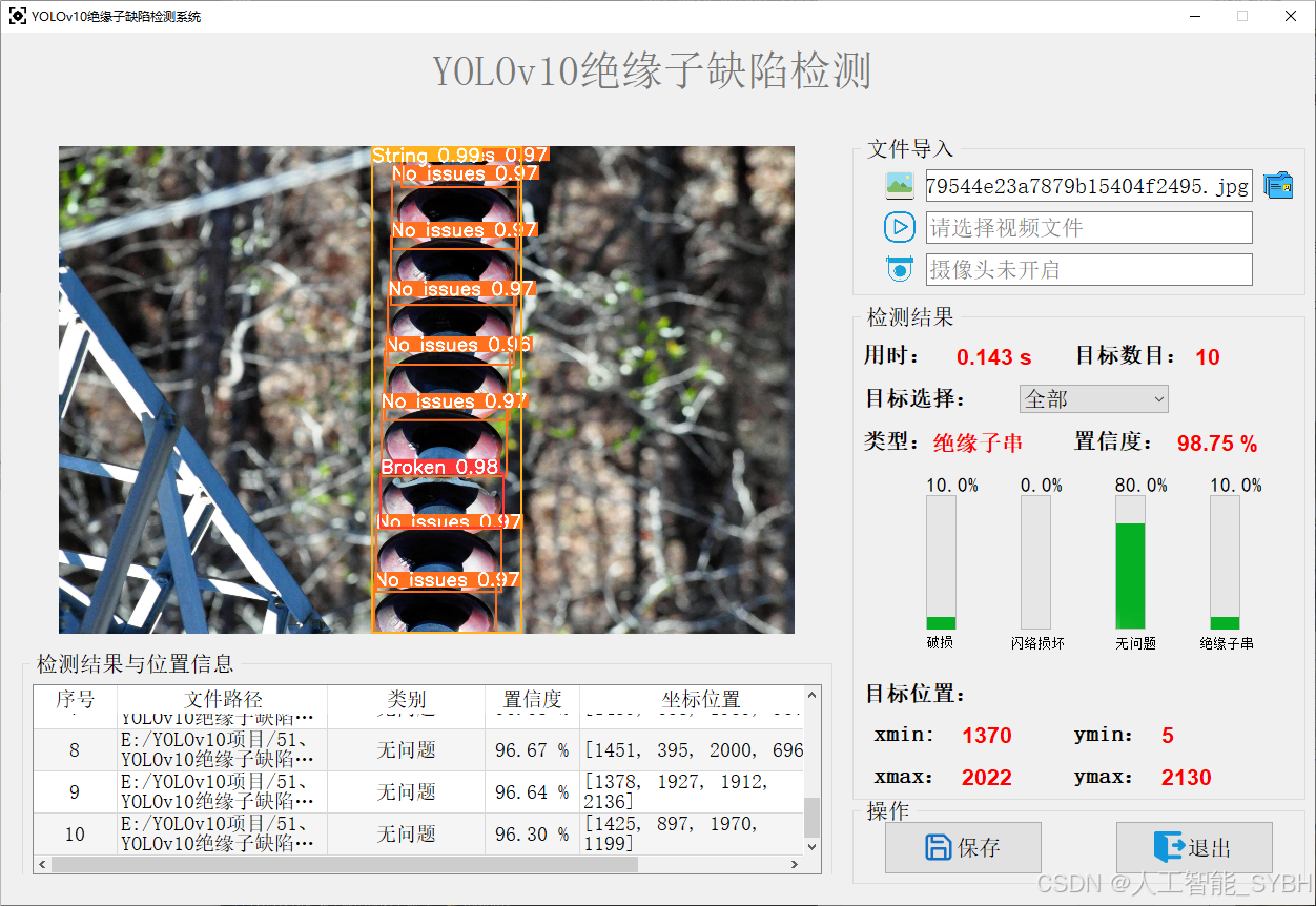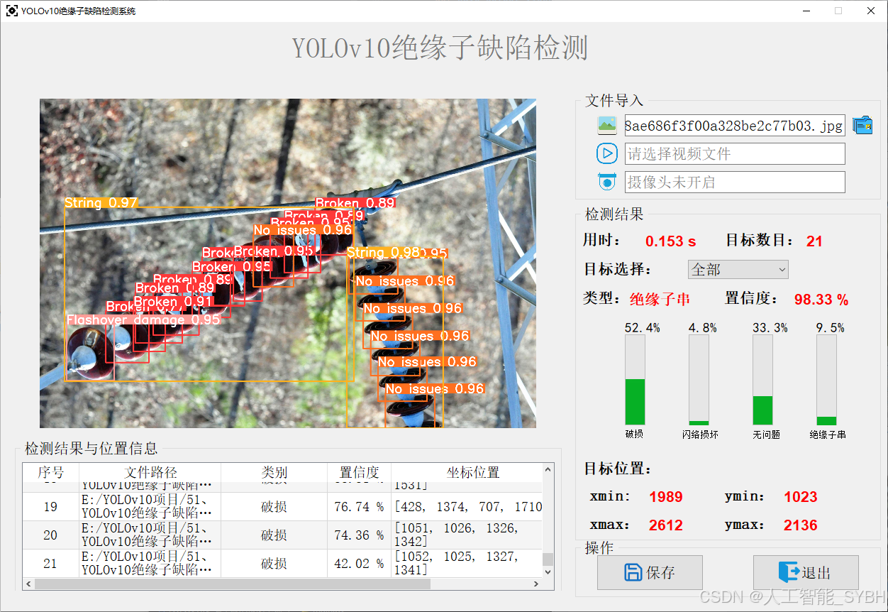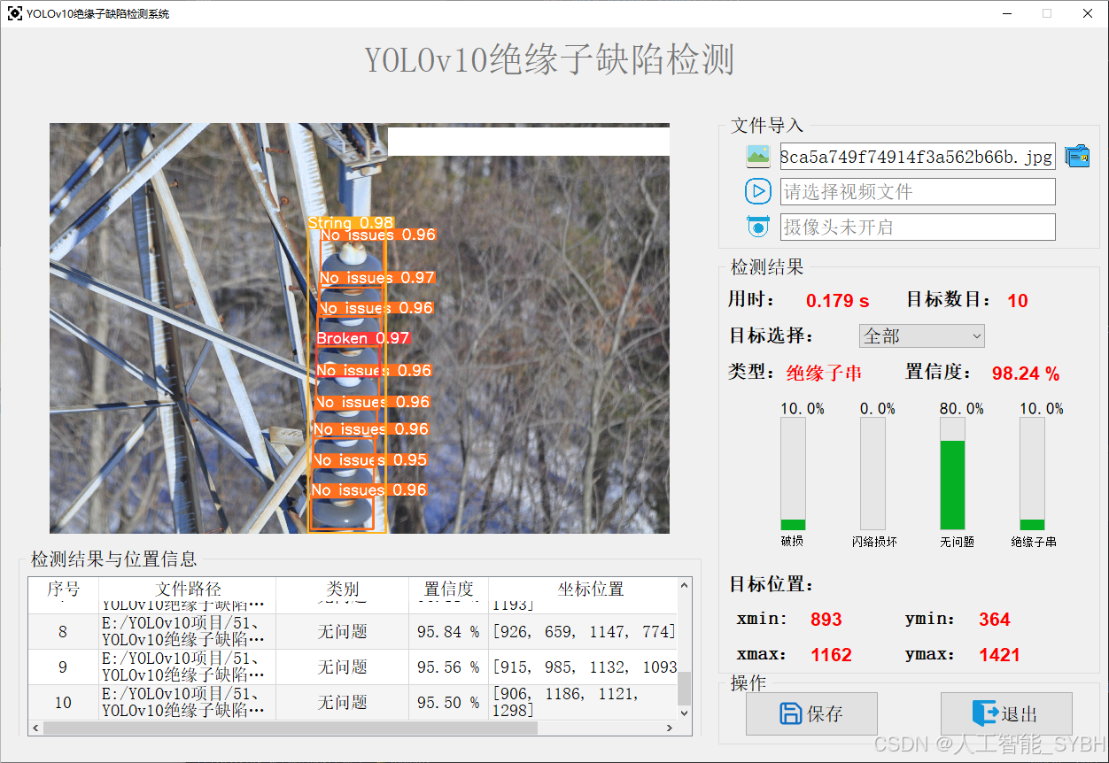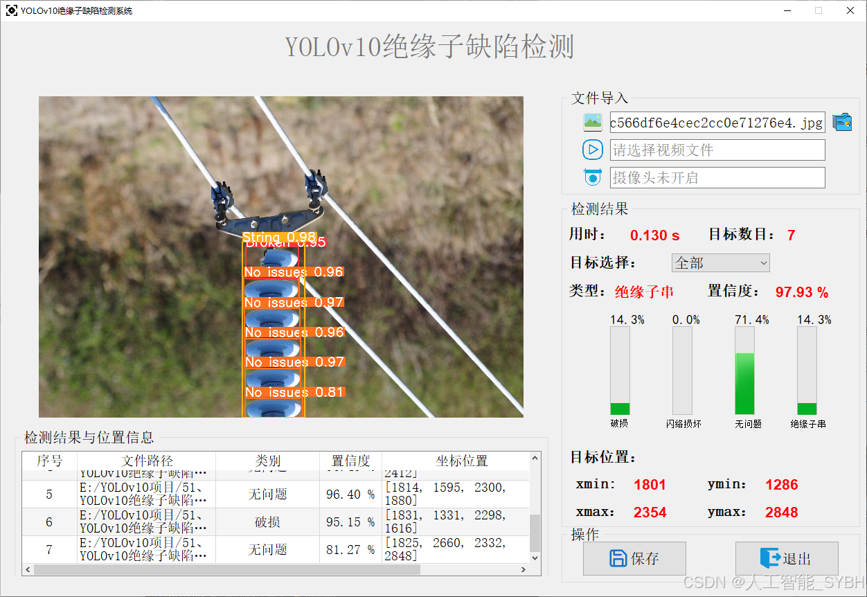 分类与定位:系统不仅能识别绝缘子状态,还能给出绝缘子的位置信息(边界框)。