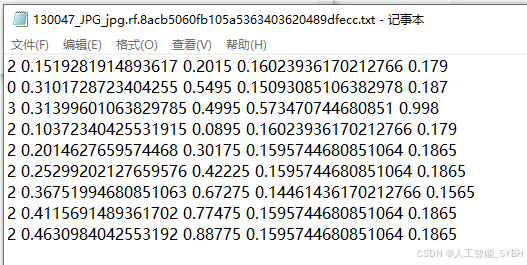 转换格式:将标注的数据转换为YOLO格式。YOLO标注格式为每行: