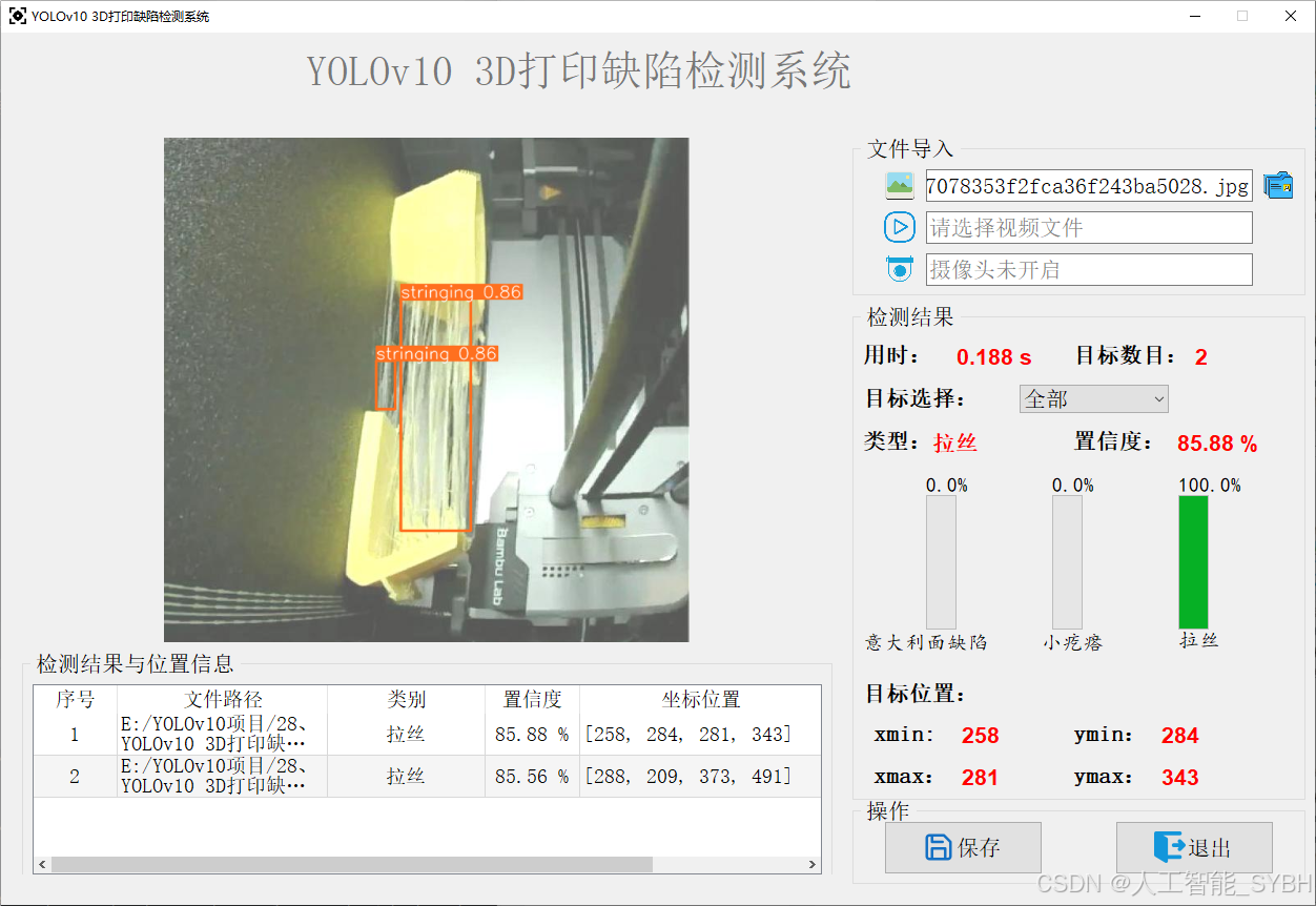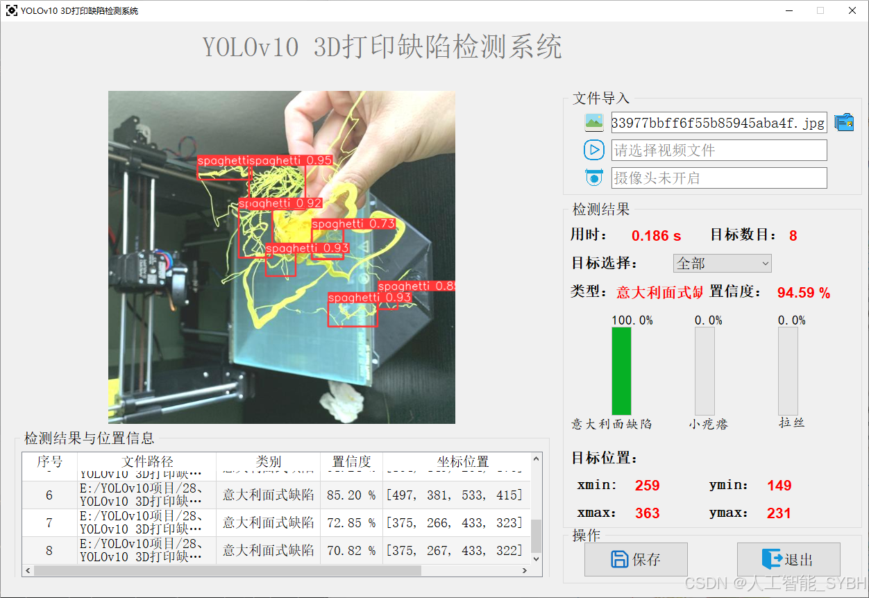 3D 打印技术在制造业、医疗、建筑等领域的应用日益广泛,但打印过程中容易出现缺陷(如拉丝、麻点、粘连等),影响产品质量。传统的缺陷检测方法依赖于人工检查或简单的传感器检测,效率较低且容易出错。基于深度学习的目标检测技术能够自动、高效地识别 3D 打印缺陷,并在实时监控中提供准确的检测结果。