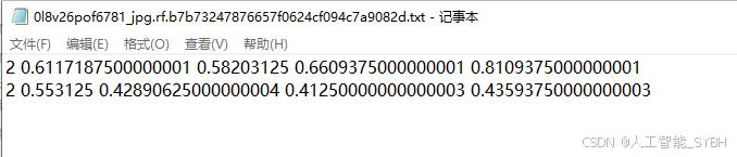 转换格式:将标注的数据转换为YOLO格式。YOLO标注格式为每行: