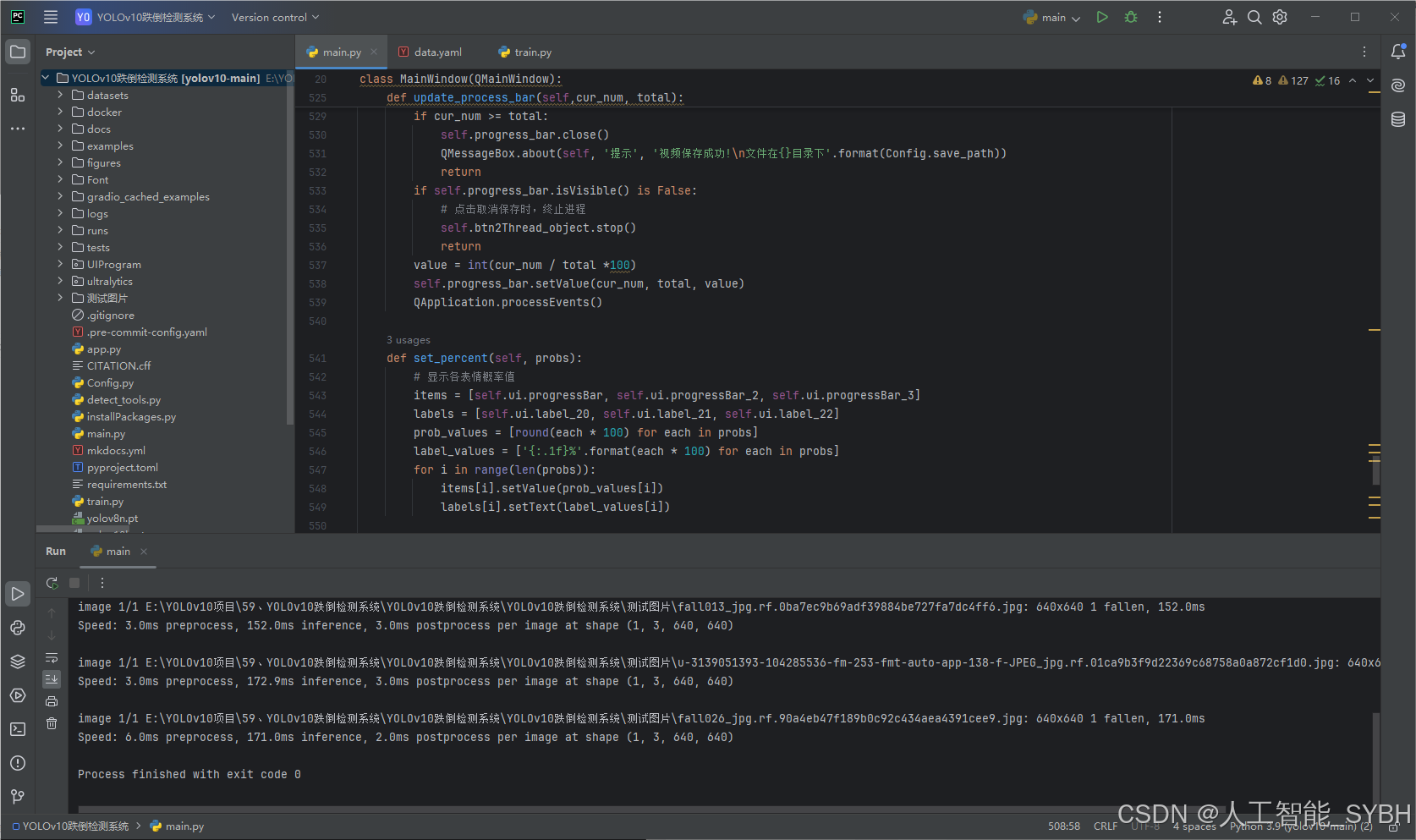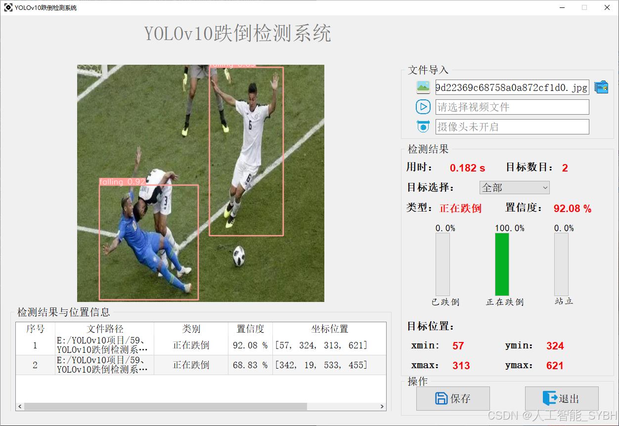 本项目利用YOLOv10(You Only Look Once version 10)目标检测算法,开发一个高效的跌倒检测系统。该系统能够自动从监控视频或图像中检测人体姿态,并分类状态(如跌倒中、已跌倒、站立),为智能监控和健康护理提供支持。