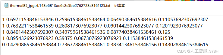 转换格式:将标注的数据转换为YOLO格式。YOLO标注格式为每行: