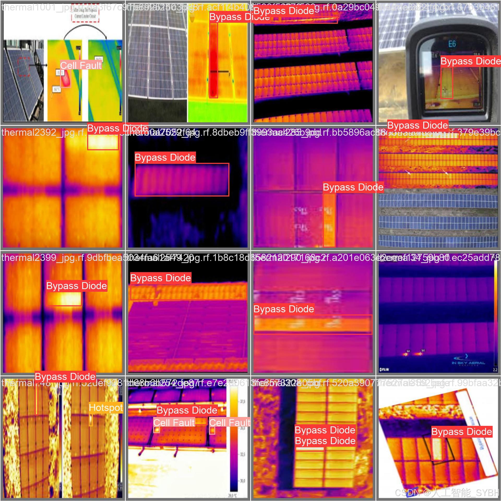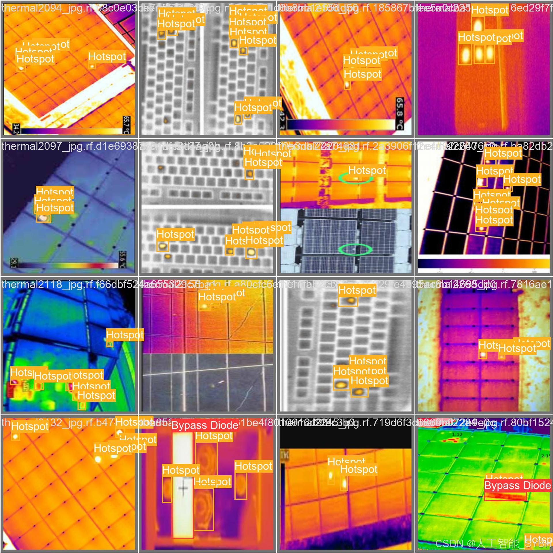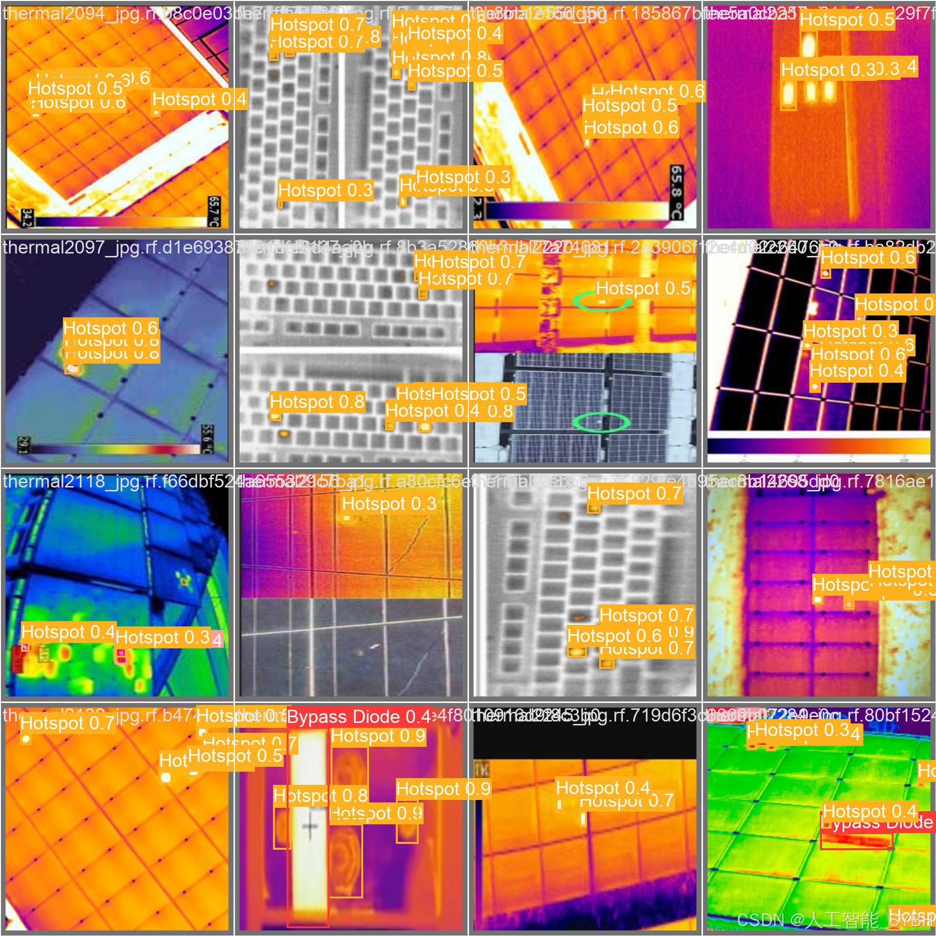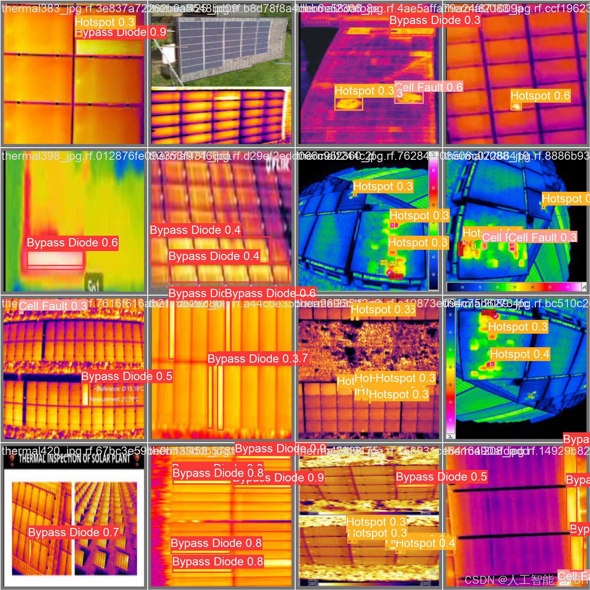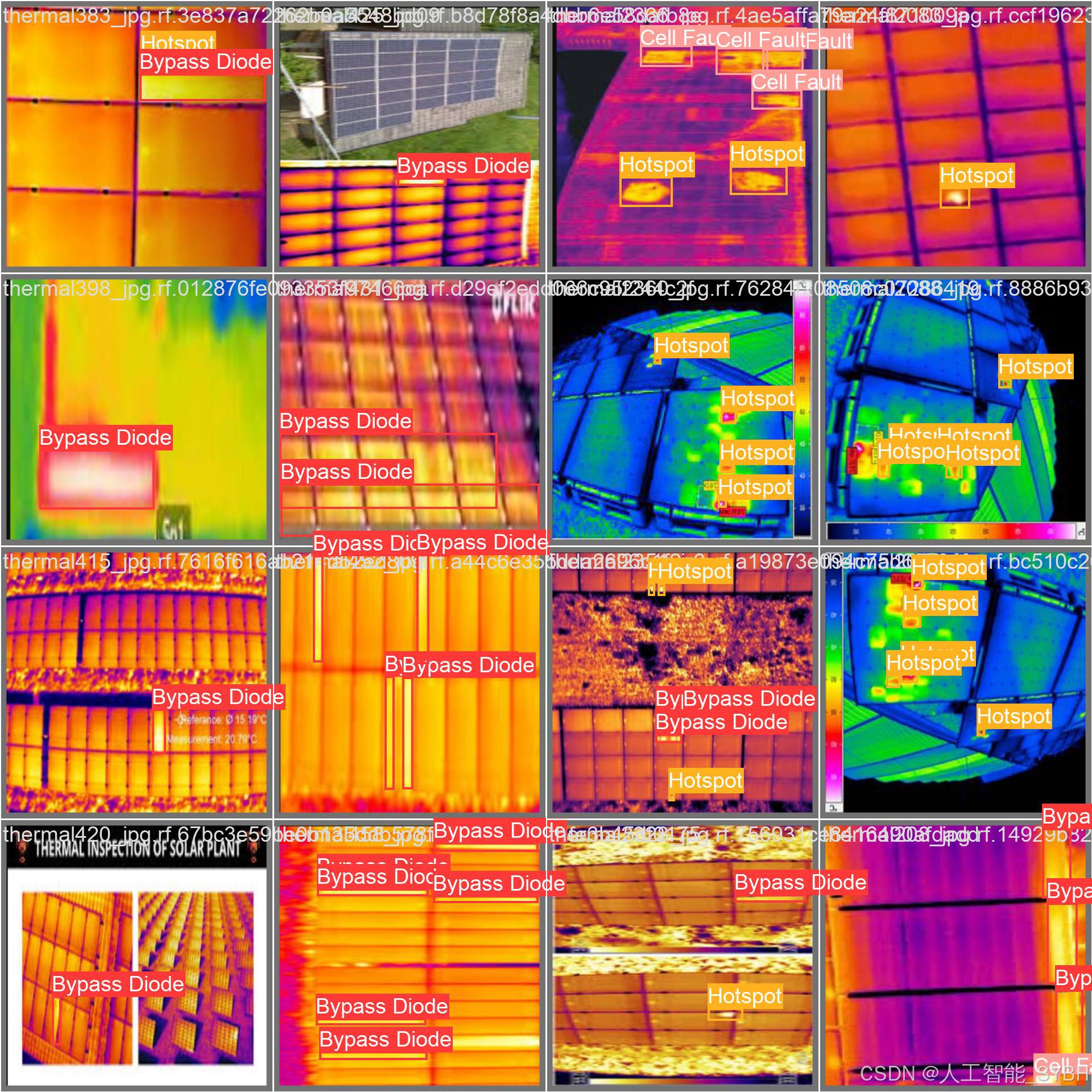 太阳能板作为清洁能源的重要组成部分,其性能和寿命直接影响能源转换效率。然而,在制造和使用过程中,太阳能板可能会出现多种缺陷,如旁路二极管故障(Bypass Diode)、电池片故障(Cell Fault)、缺陷区域(Defects)和热点(Hotspot)等。这些缺陷不仅会降低太阳能板的发电效率,还可能导致安全隐患。