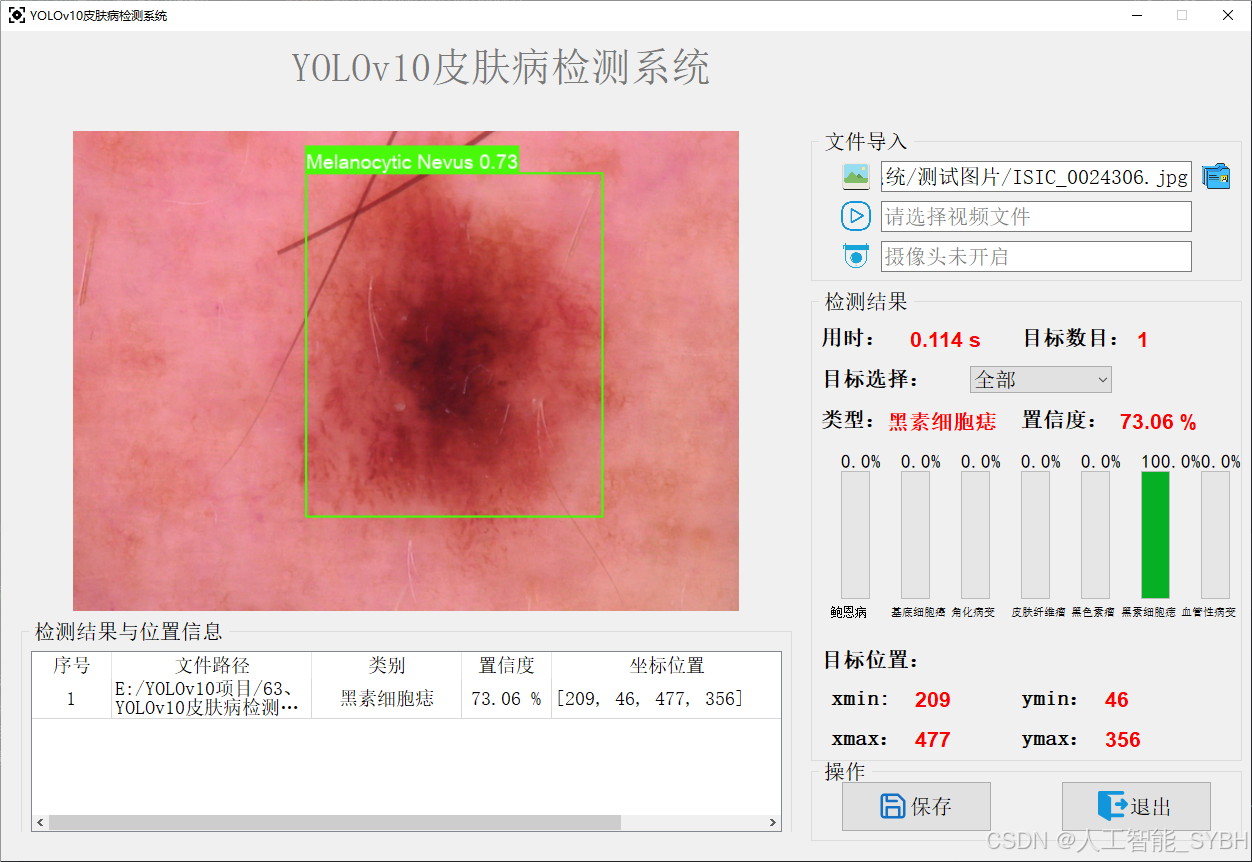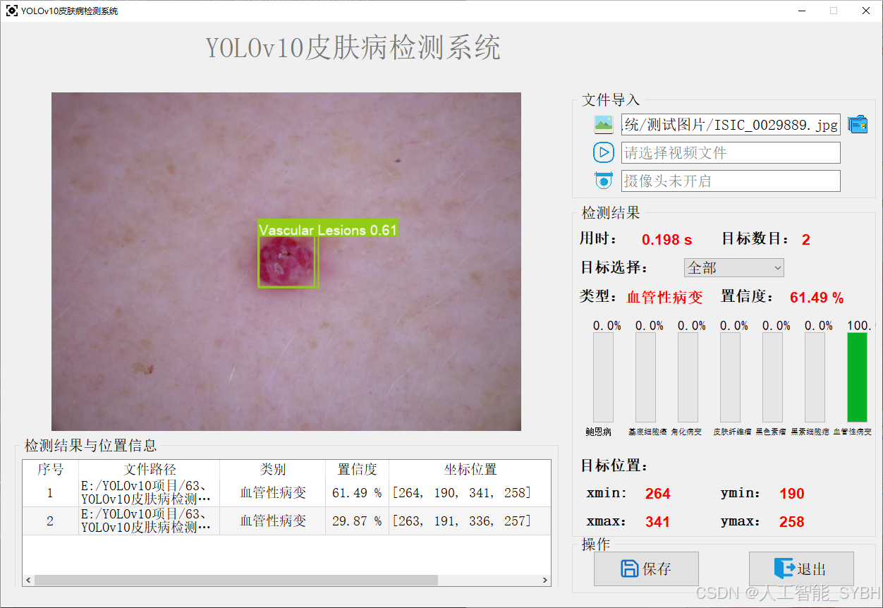 近年来,基于深度学习的目标检测技术(如YOLO系列)在医学图像分析领域取得了显著进展。YOLOv10作为YOLO系列的最新版本,具有更高的检测速度和精度,非常适合应用于皮肤病检测场景。本项目旨在利用YOLOv10算法,结合皮肤病图像数据,开发一套高效、准确的皮肤病检测系统,为皮肤病诊断提供智能化支持。
