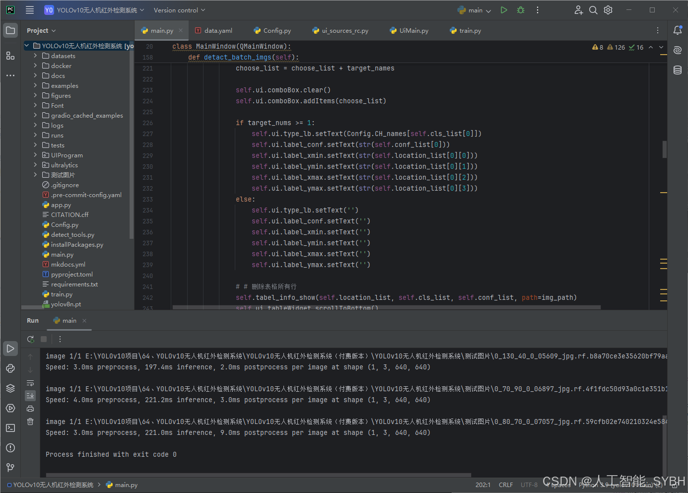 模型选择:采用YOLOv10作为核心检测算法,因其在速度和精度上的优异表现,非常适合无人机实时检测场景。