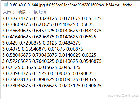 转换格式:将标注的数据转换为YOLO格式。YOLO标注格式为每行: