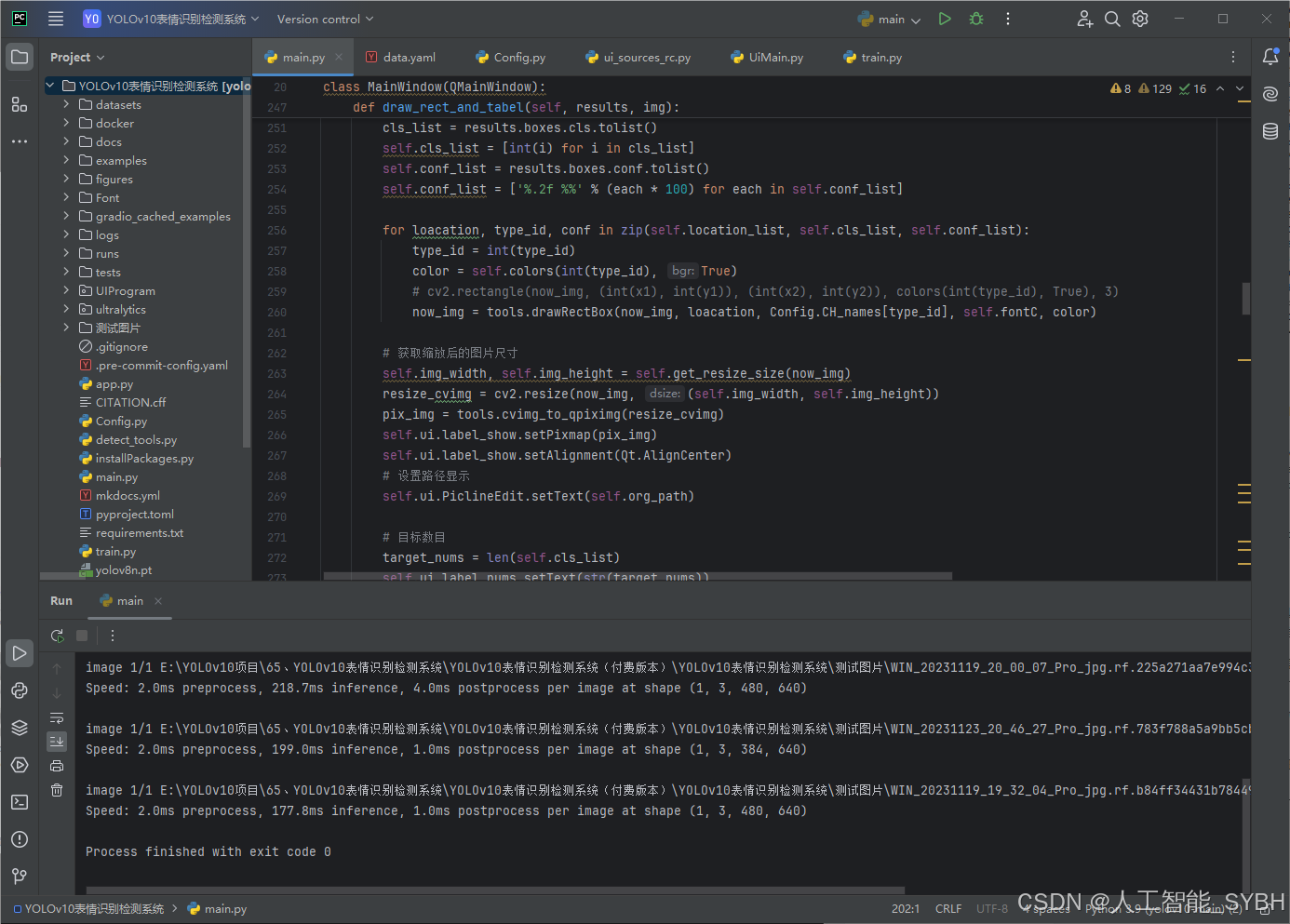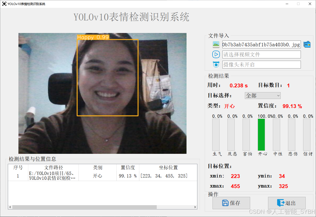 模型选择:采用YOLOv10作为核心检测算法,因其在速度和精度上的优异表现,非常适合实时表情识别场景。
