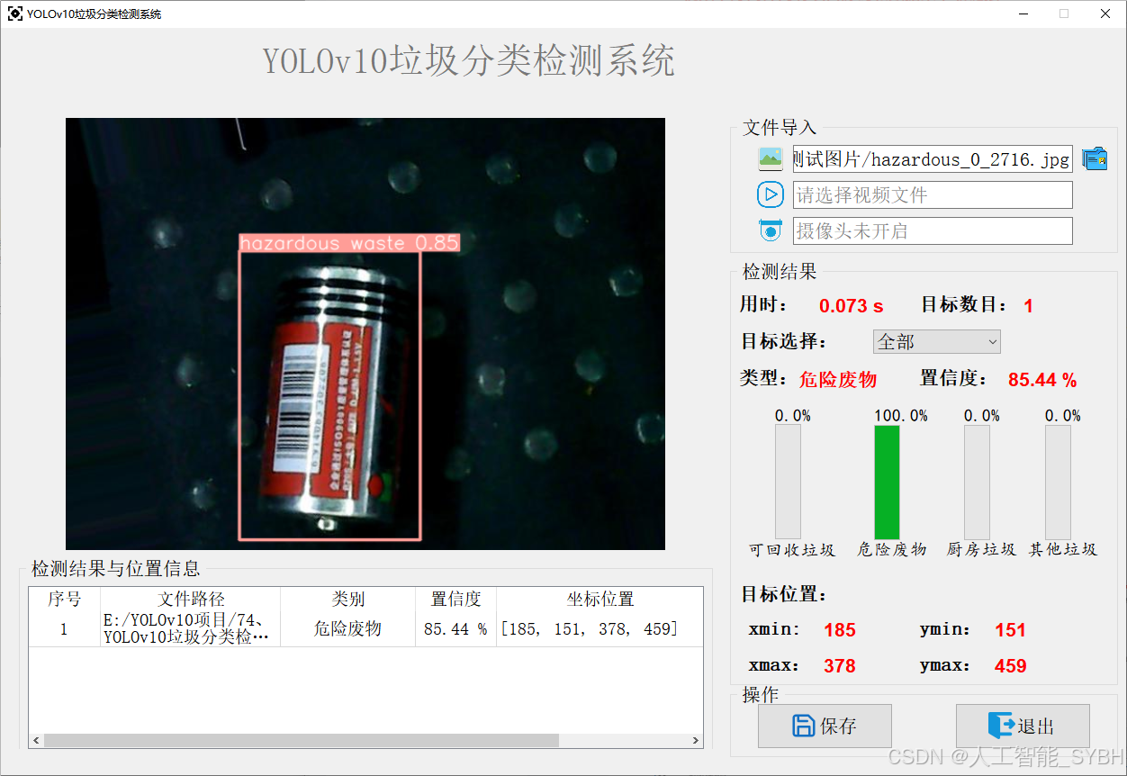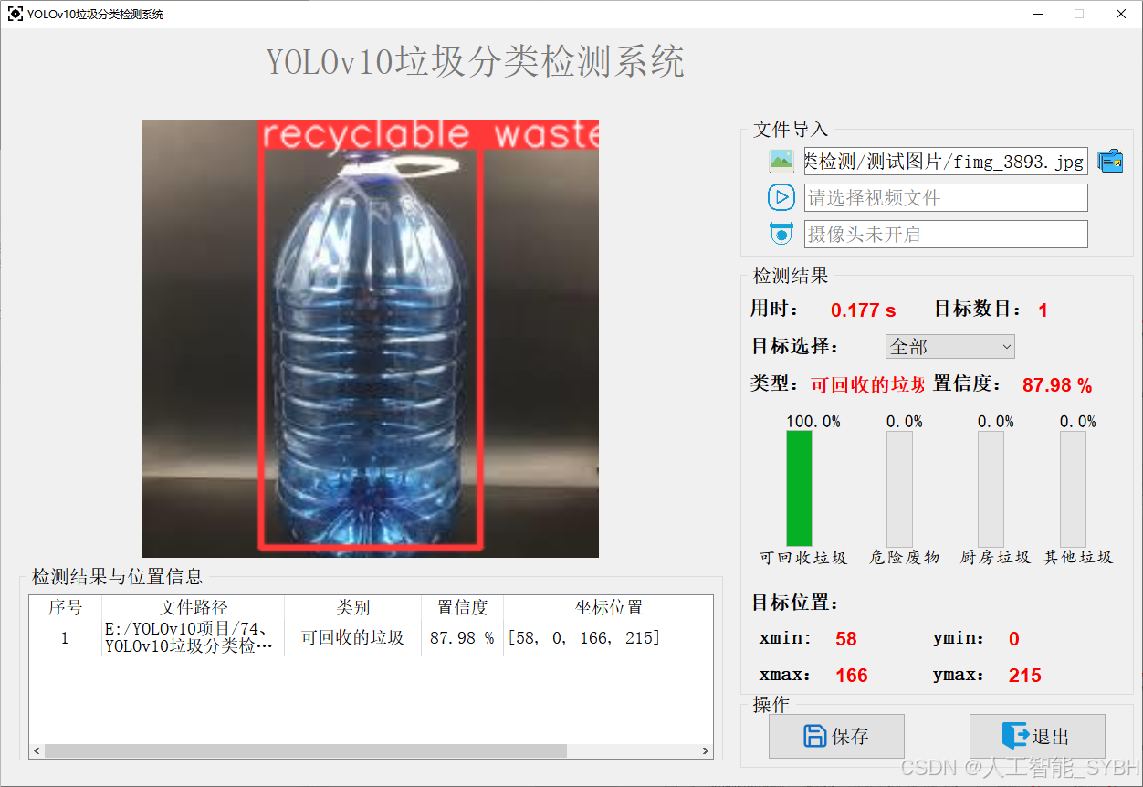 多类别识别: 准确区分4类垃圾