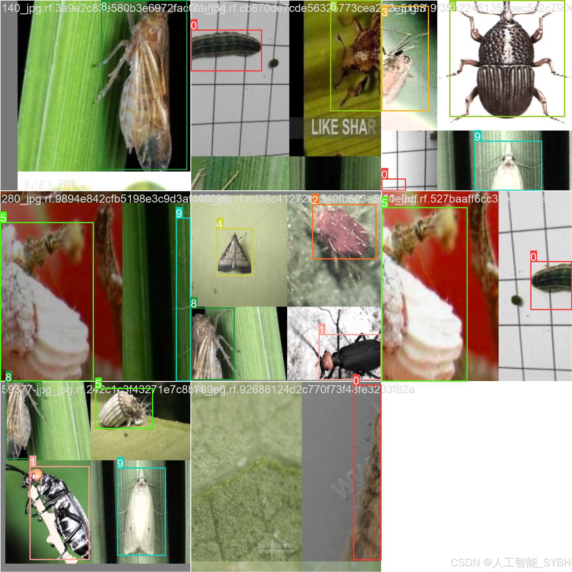 在我们的数据集中,十种昆虫的实例数量基本持平,这有助于防止模型在训练过程中偏向于更频繁标注的类别。,每个类别的边界框均精确地标注在图像中。这些标注对于训练模型来说非常关键,因为它们为模型提供了识别和定位目标的必要信息。