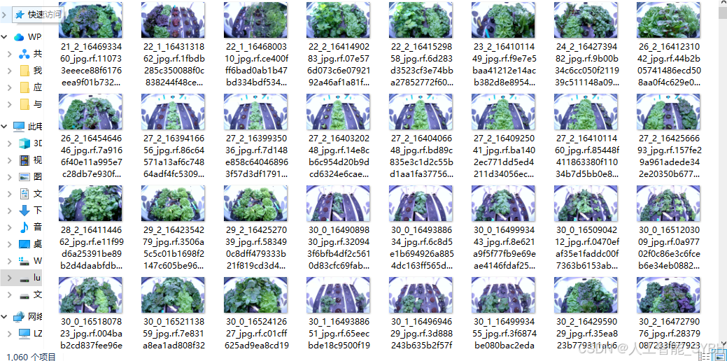 在构建用于生菜生长周期检测的深度学习模型时,一个全面和精确标注的数据集是至关重要的。我们的数据集共包含1510张图像,其中包括1060张训练图像,299张验证图像,以及151张测试图像。这样的划分旨在确保模型能在充足的数据上进行训练,同时留出足够的样本来验证和测试模型的性能。