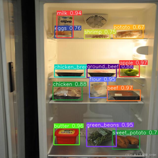基于YOLOv10深度学习的冰箱内食物检测系统利用YOLOv10目标检测算法,实现了对冰箱内30种不同类型食物的自动识别与实时定位。该系统通过训练特定的食物数据集,能够准确地识别和标记图像或视频中的食物类别,并显示其位置。系统配备了一个用户友好的UI界面,用户可通过该界面上传图片或视频,实时查看食物检测结果。此外,系统支持高精度的实时检测,并提供免费的开源代码,方便用户进行定制和扩展。该系统广泛应用于智能厨房、食品管理以及家居自动化等场景,具有高效的食物识别能力,助力优化食材管理和食品安全监控。
