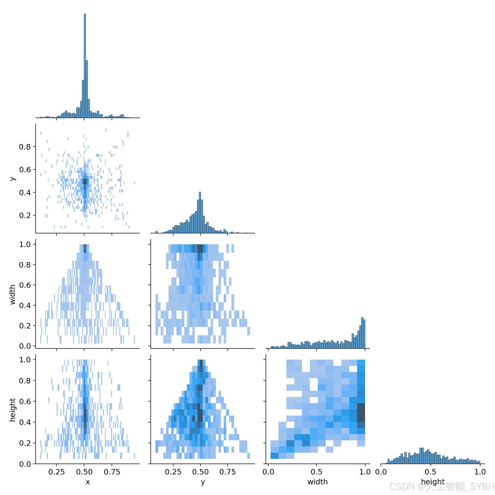 此外,标注框的大小分布表明无人机在图像中的尺寸具有较大差异。为了使模型能够识别各种大小的无人机,我们在数据集的宽度和高度分布中充分考虑了这一点。