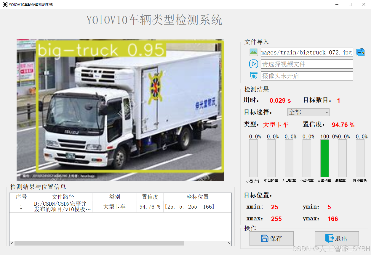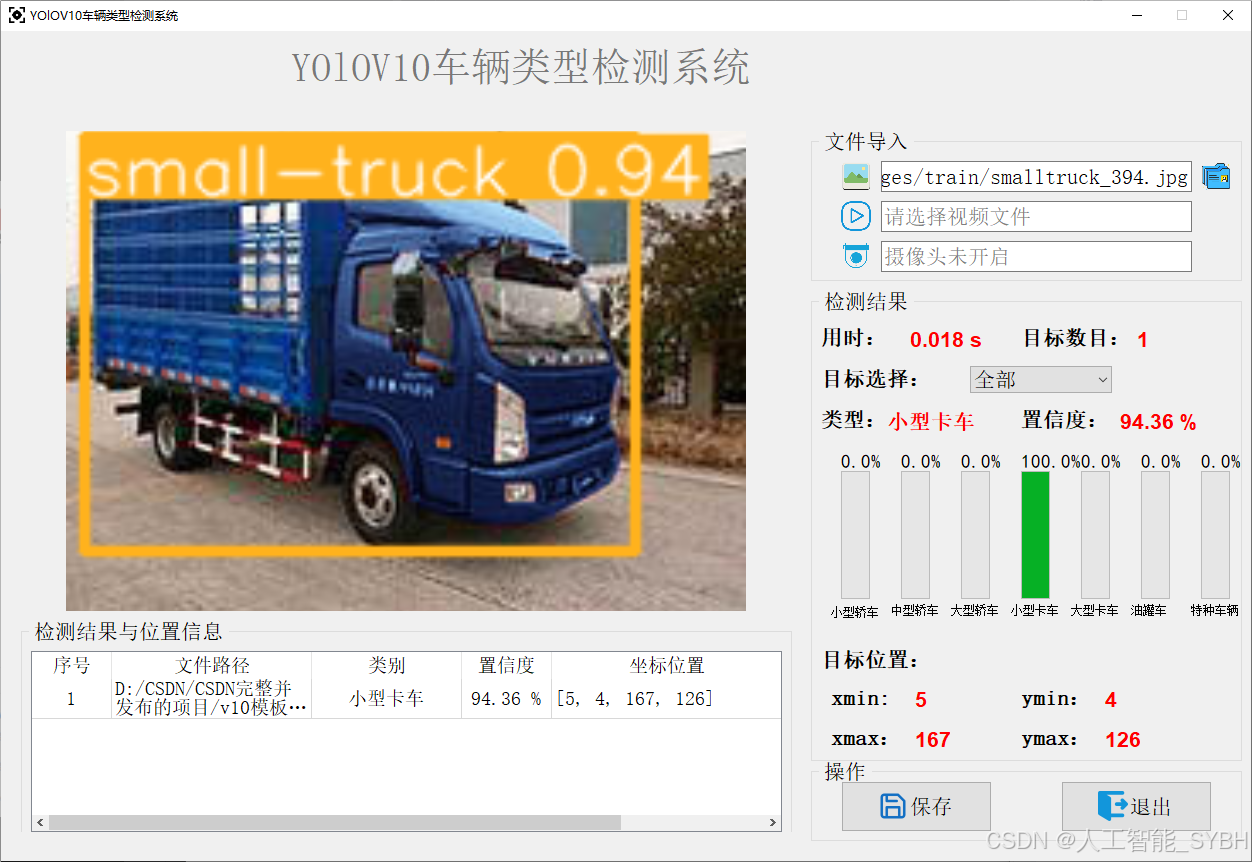 2. 界面可实时显示目标位置、目标总数、置信度、用时等信息;
