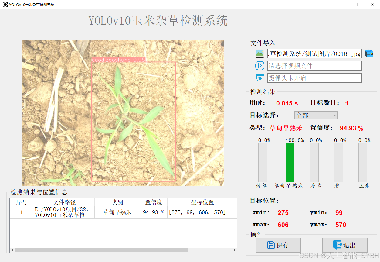 在农业生产中,杂草是影响作物生长和产量的重要因素之一。传统的杂草识别和清除方法通常依赖于人工操作,效率低下且成本较高。随着计算机视觉和深度学习技术的快速发展,基于图像的杂草自动检测系统逐渐成为研究热点。本项目旨在利用YOLOv10目标检测算法,实现对五种常见杂草(ji、caodizaoshuhe、shacao、li、yumi)的自动检测,为精准农业提供技术支持。