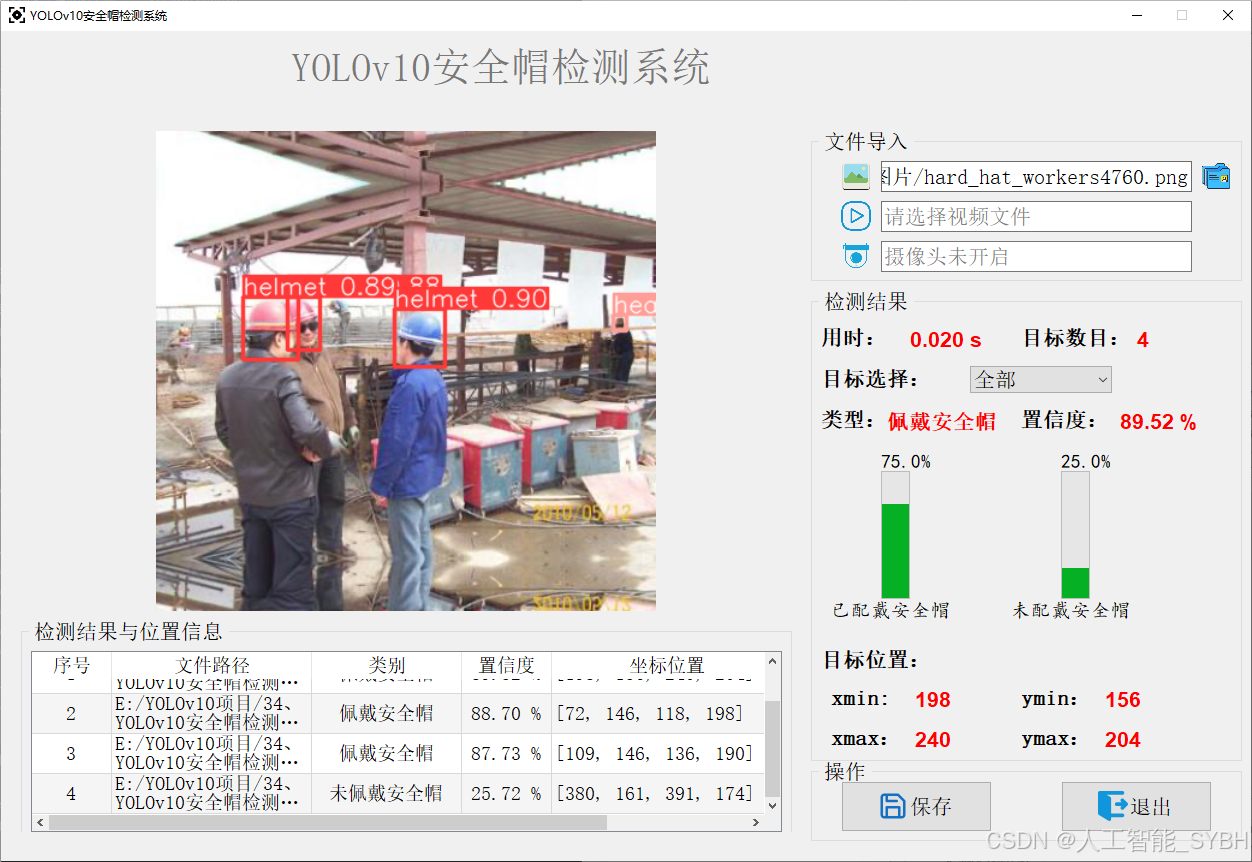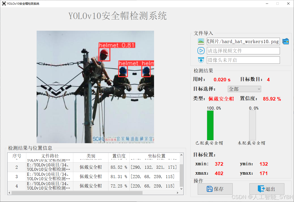 提供实时检测功能,帮助安全管理人员监控工作场所的安全帽佩戴情况。