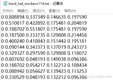 .txt文件,包含目标类别和边界框信息(归一化后的中心点坐标、宽度和高度)。 -