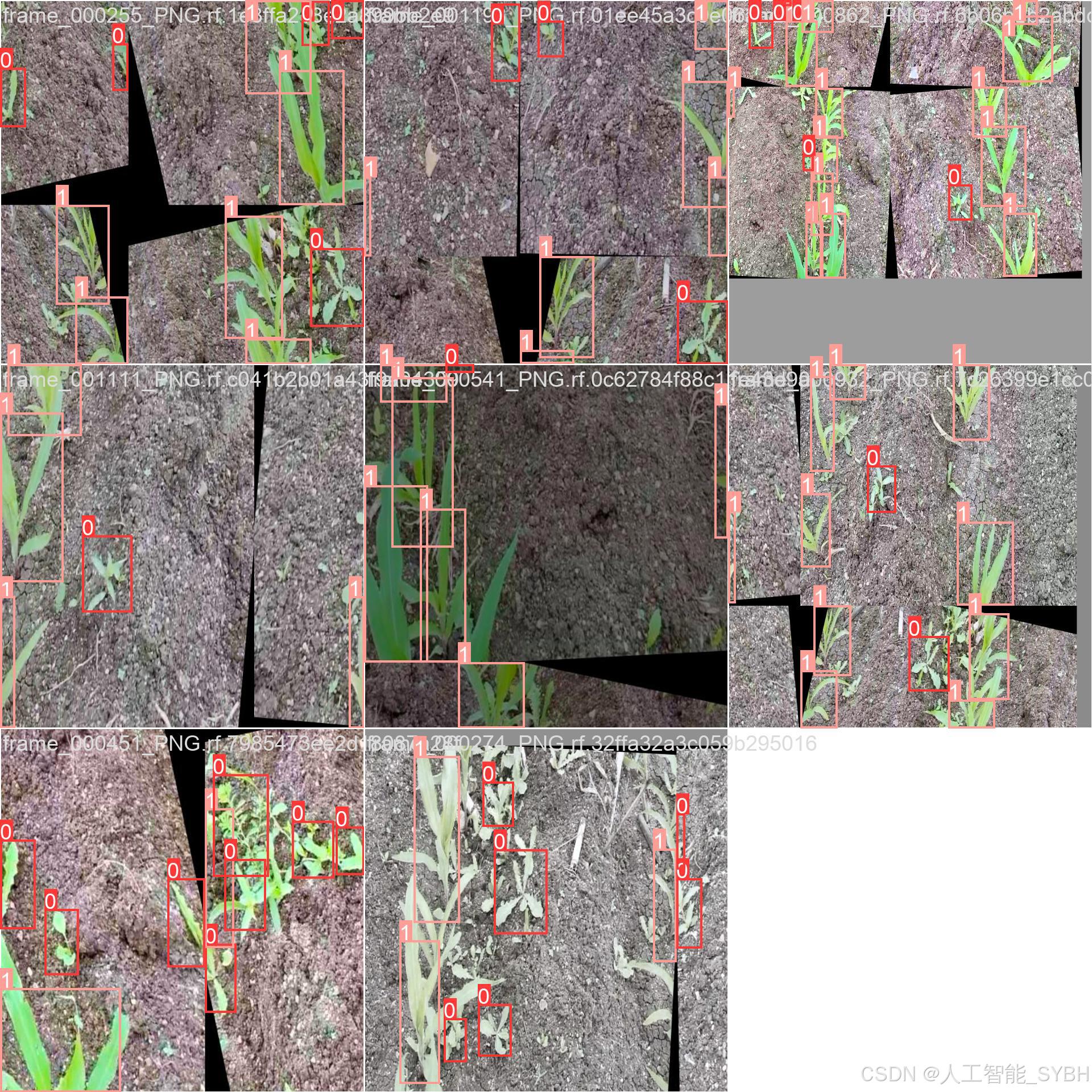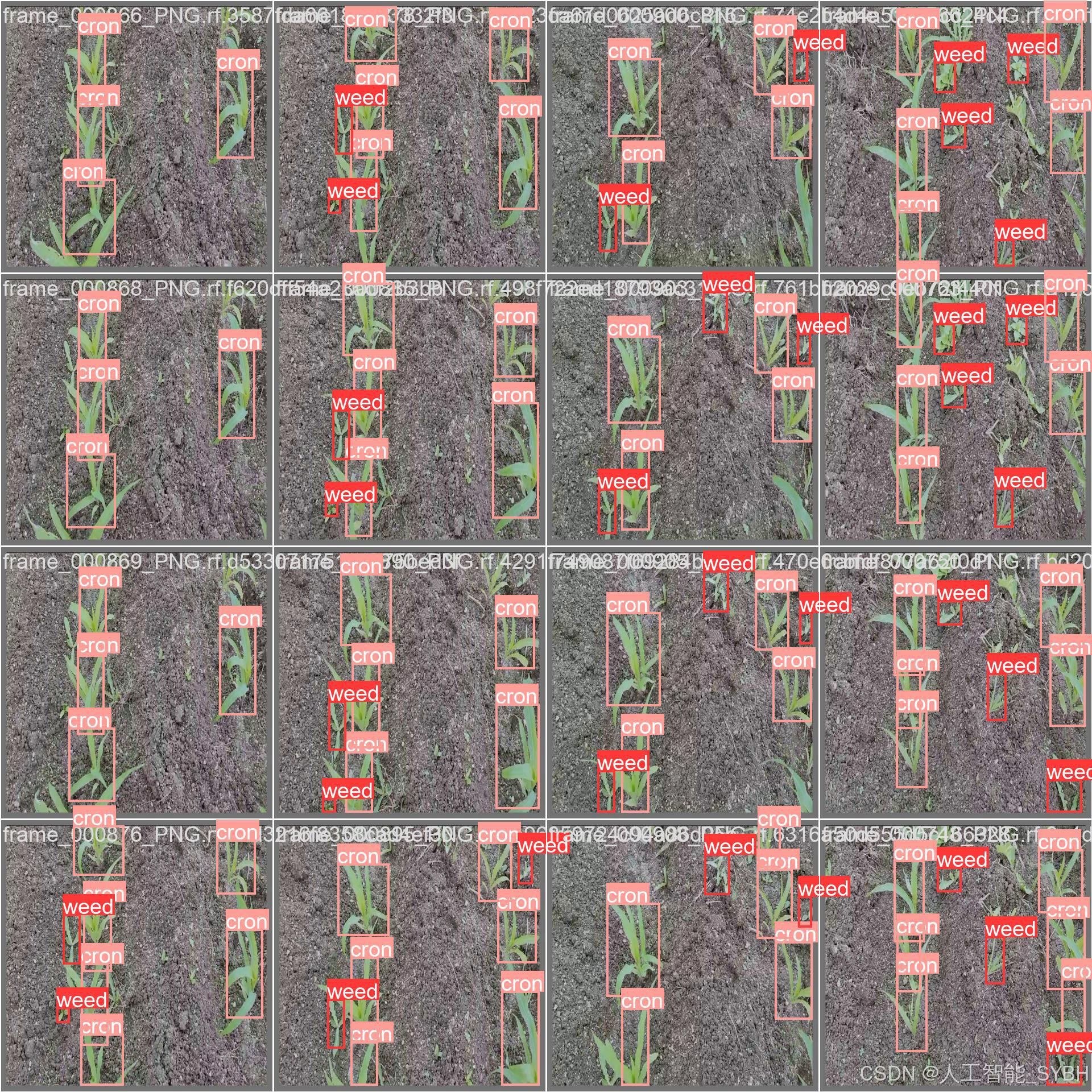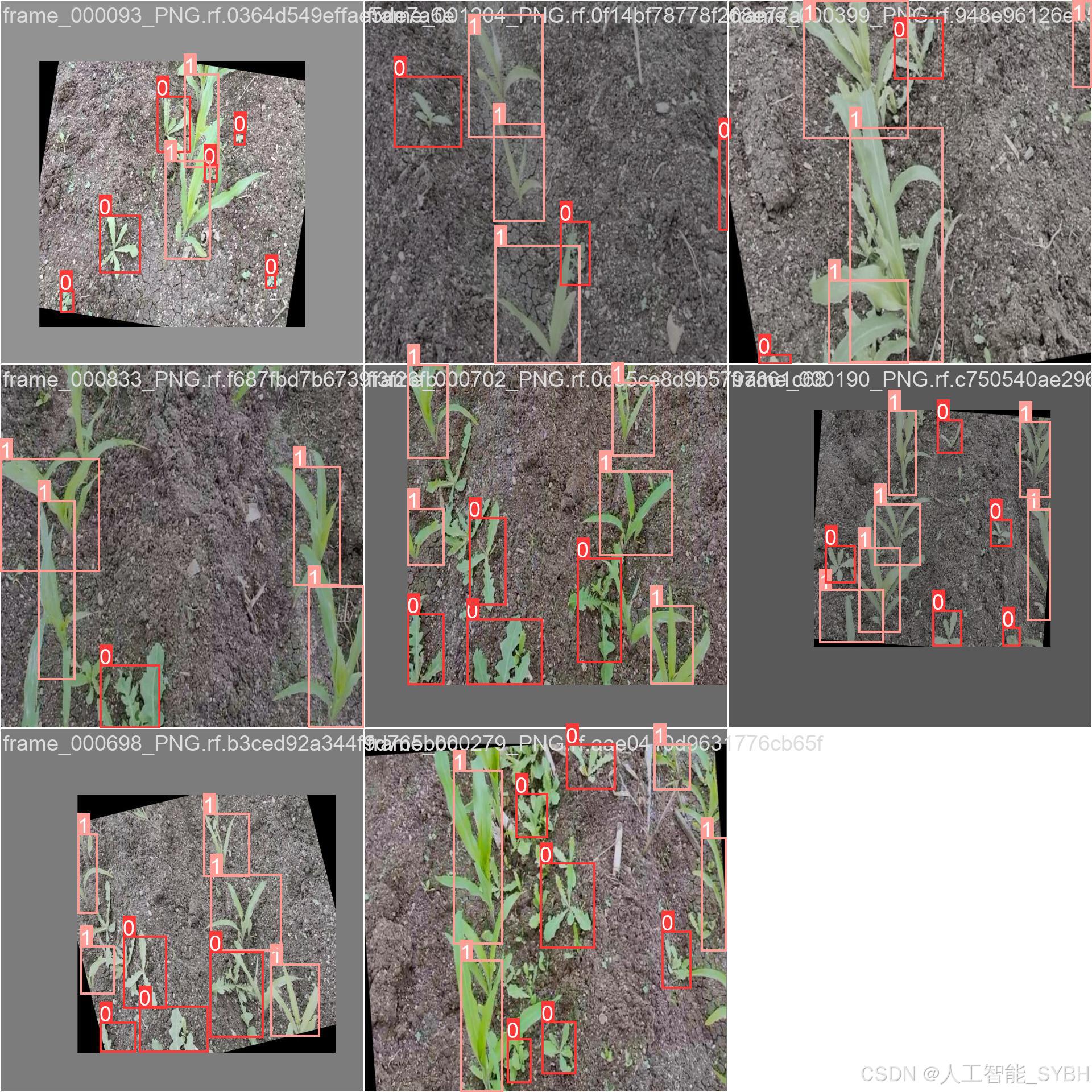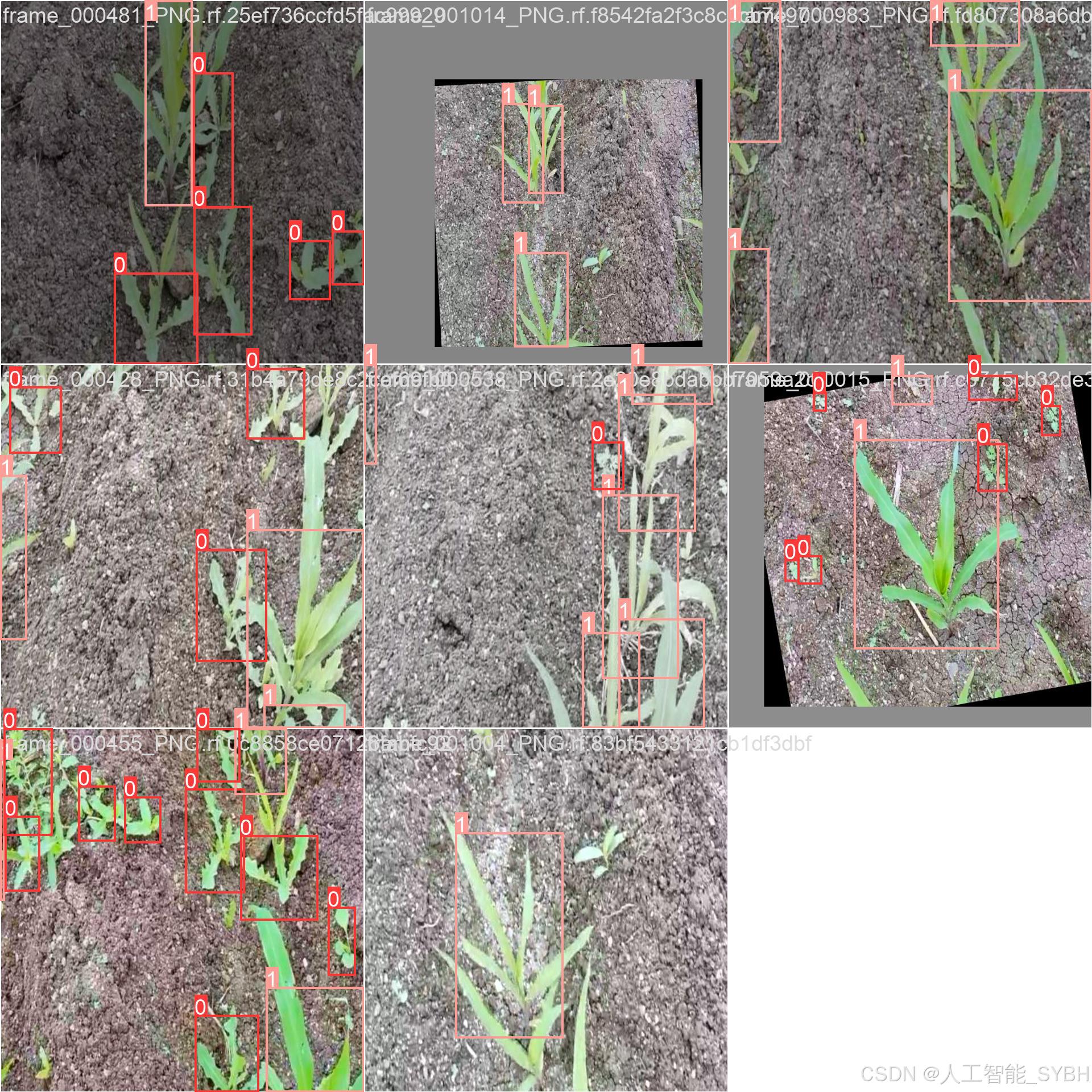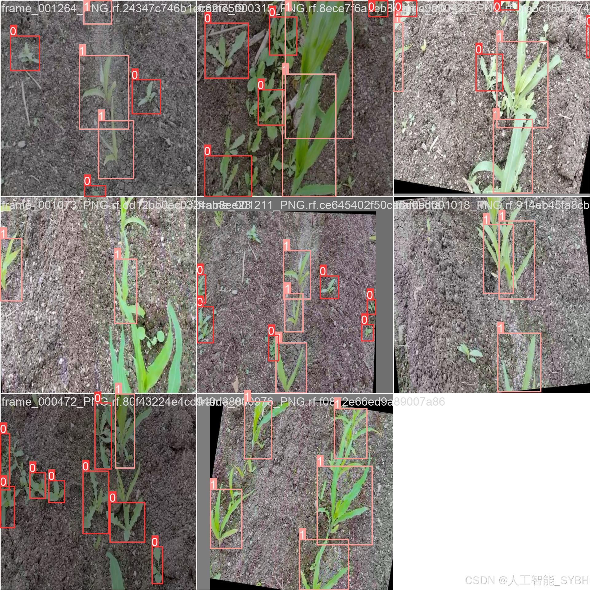 数据集描述: 该数据集包含玉米田间的图像,用于训练和验证YOLOv10玉米幼苗杂草检测模型。数据集中的图像已经过预处理和标注,标注信息包括杂草和玉米幼苗的位置和类别。
