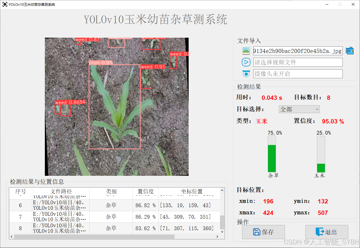 开发一个基于YOLOv10的玉米幼苗杂草检测系统,能够自动识别和定位杂草。