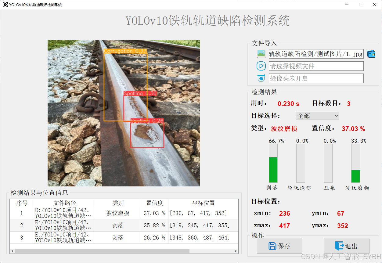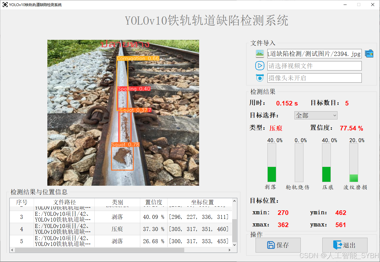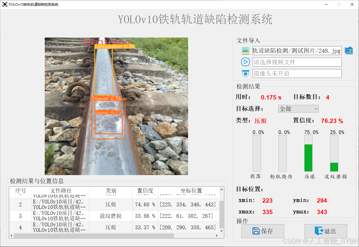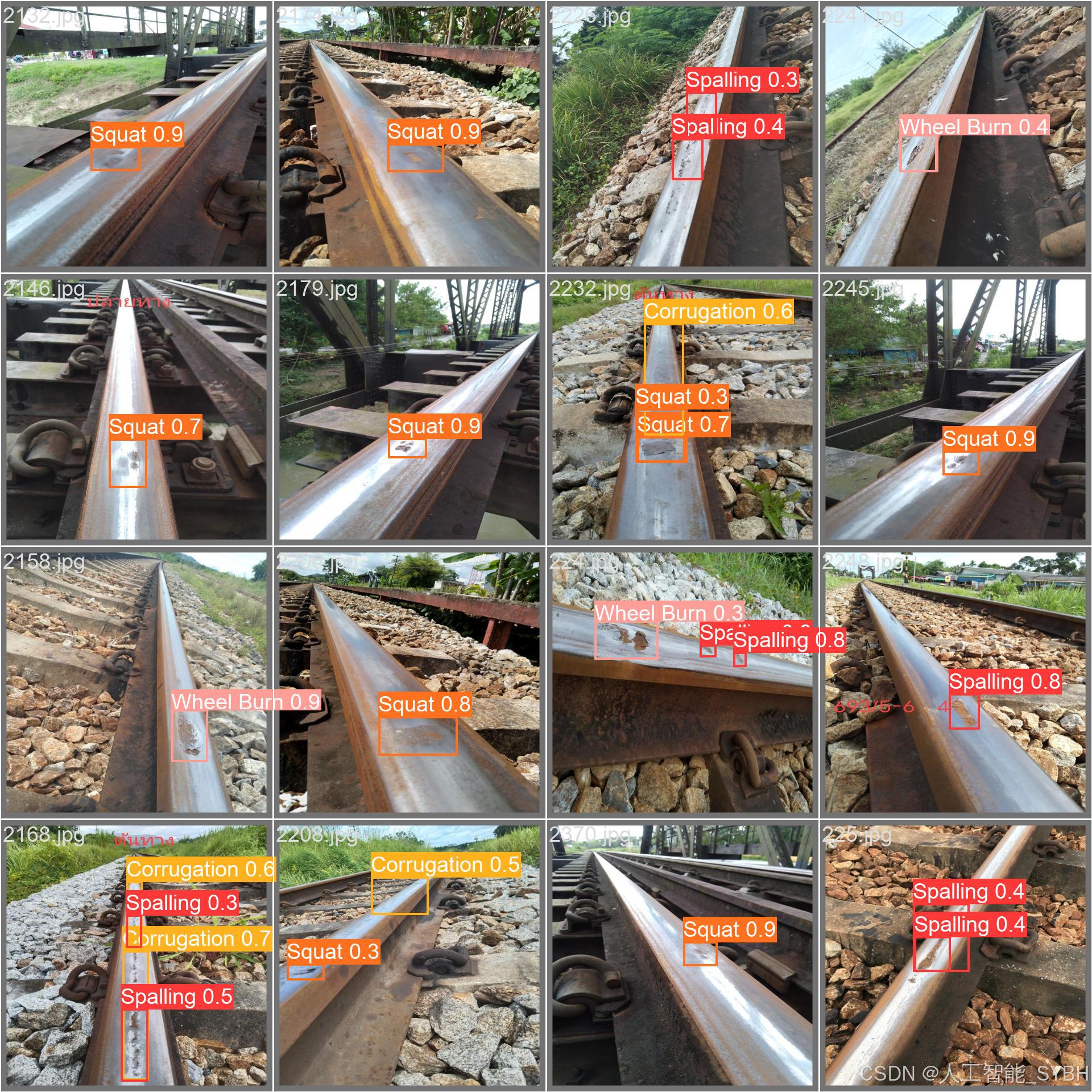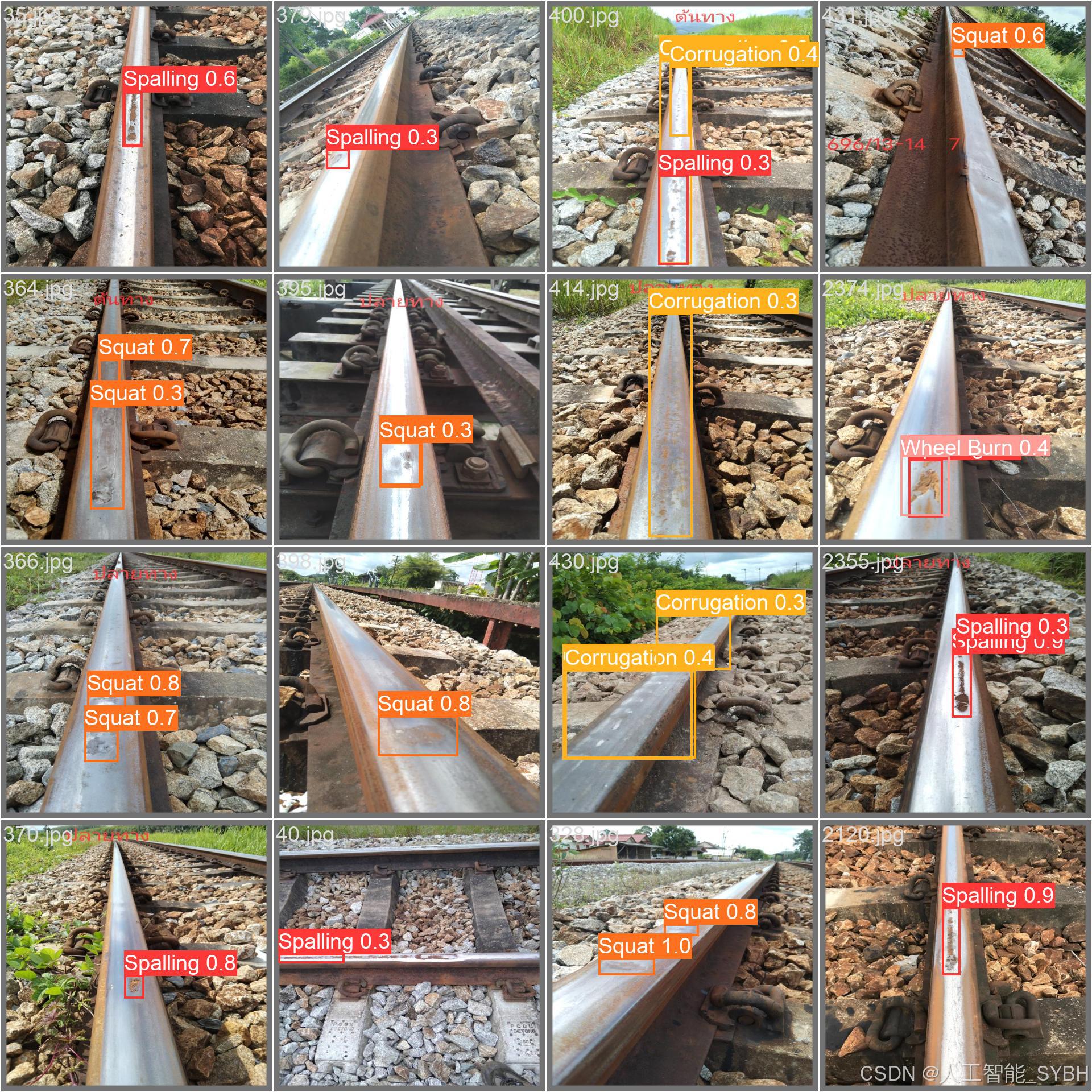 利用YOLOv10模型对铁轨轨道的四种常见缺陷进行自动检测,包括剥落(Spalling)、轮轨烧伤(Wheel Burn)、压痕(Squat)和波浪磨耗(Corrugation)。