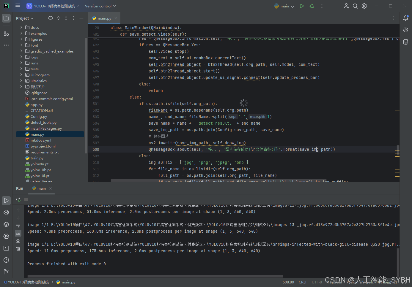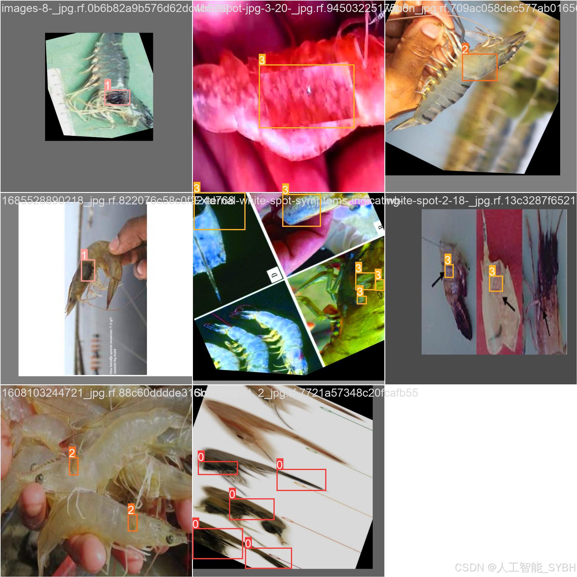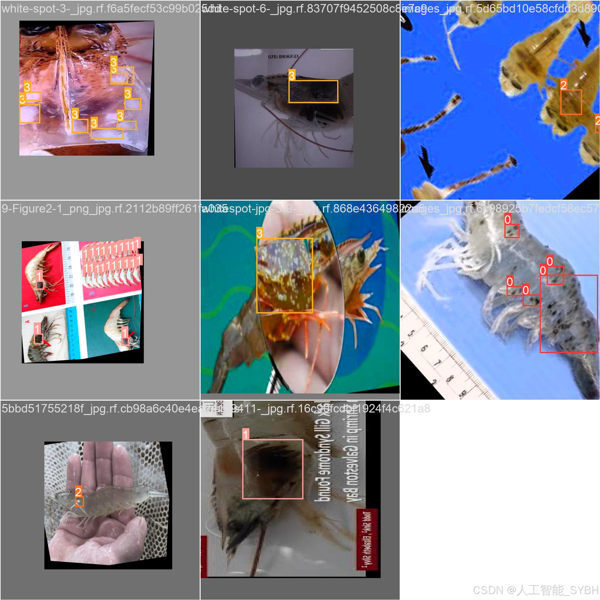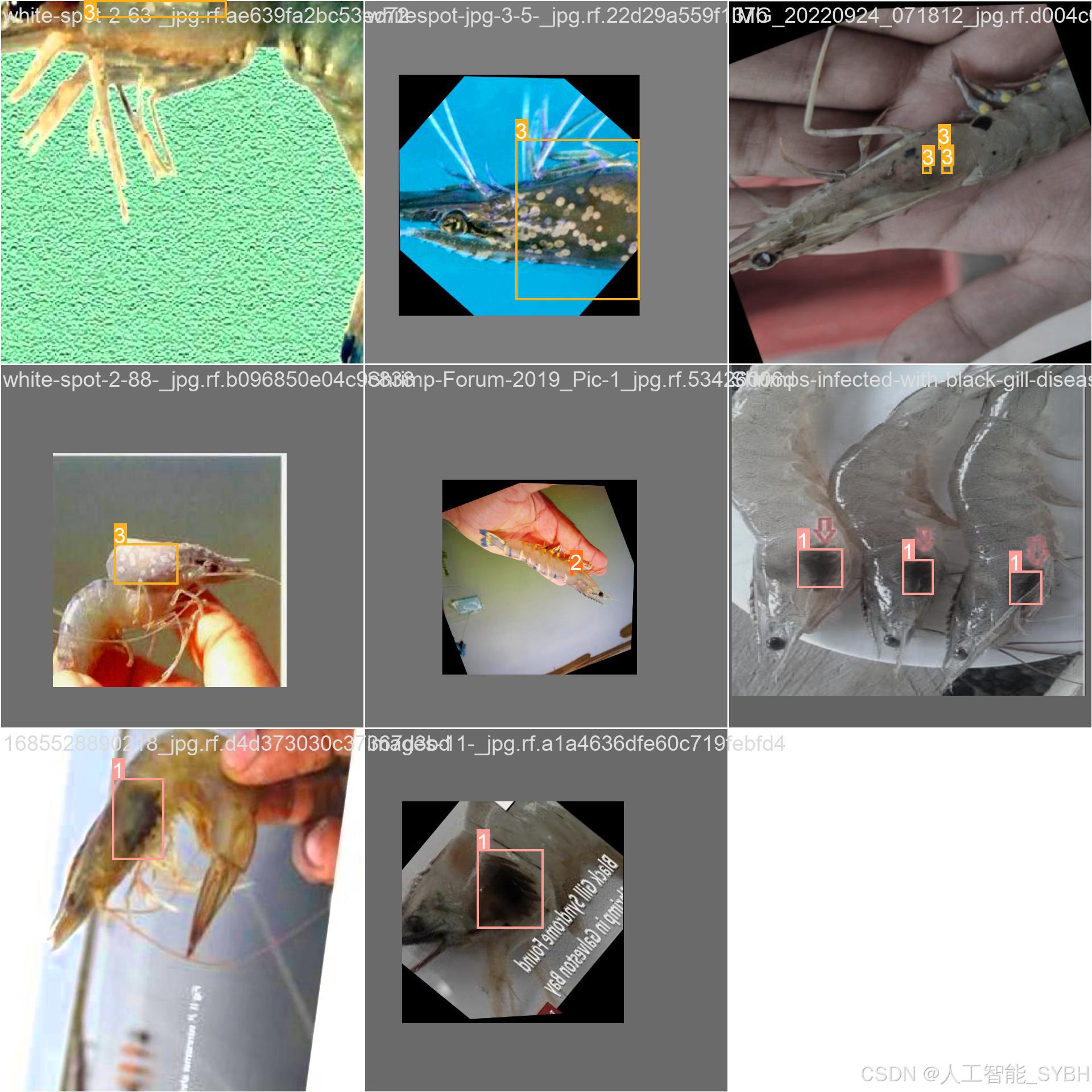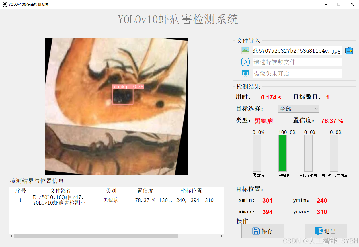 病害检测:系统能够从输入的虾类图像中自动检测出病害区域,并标注出病害类型。
