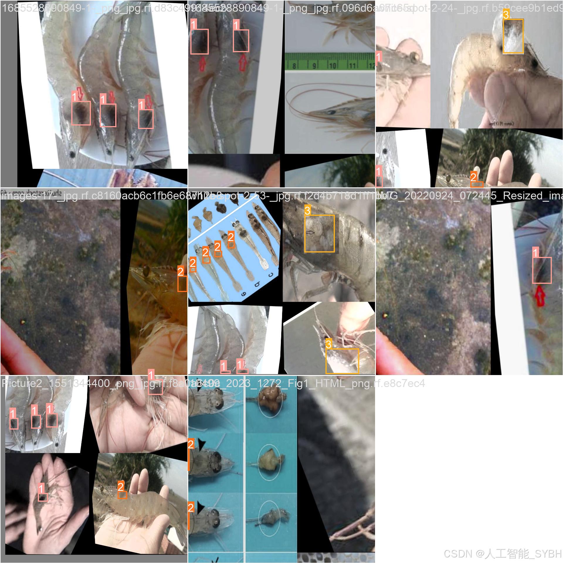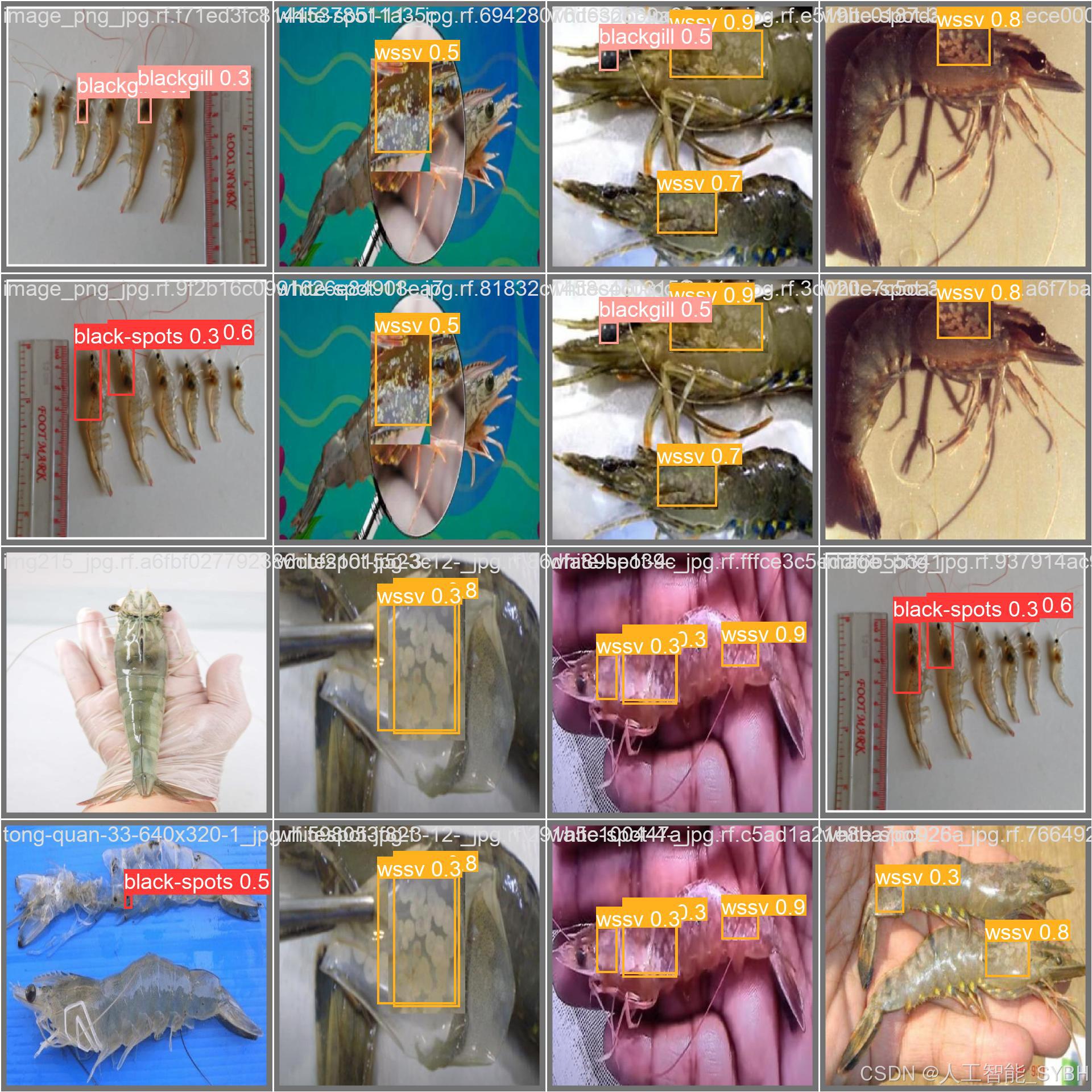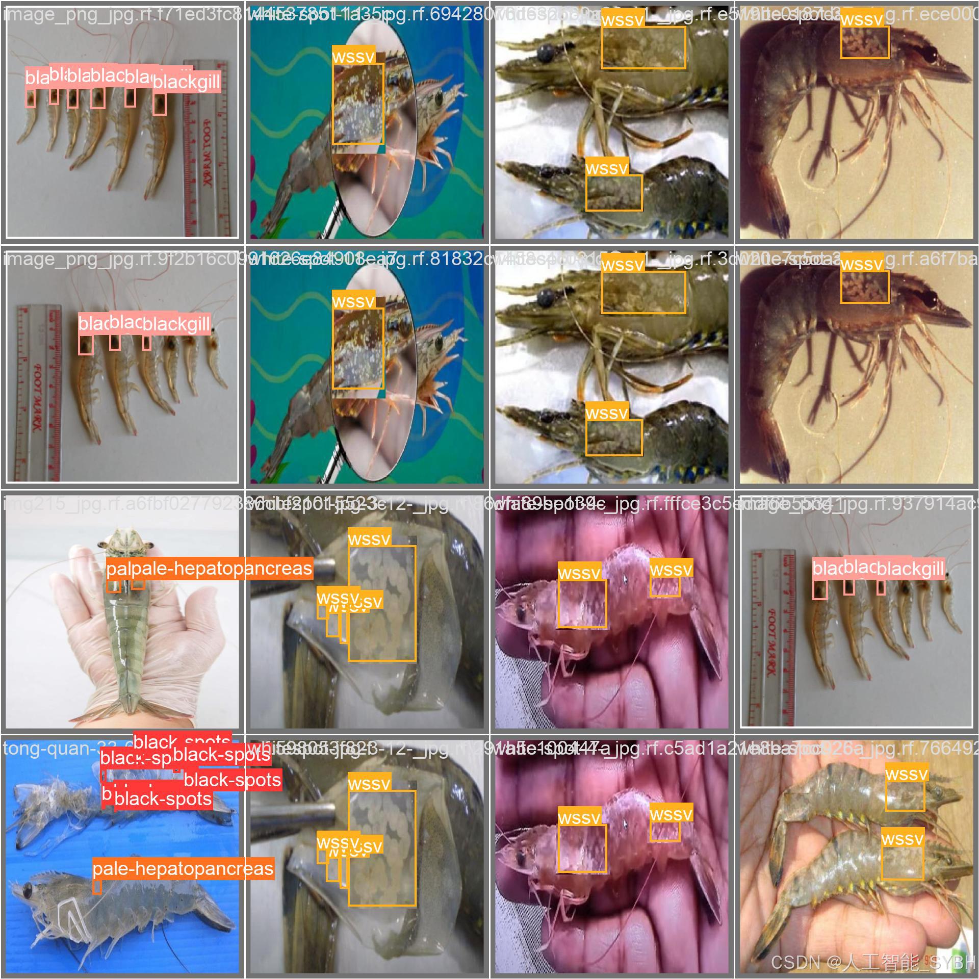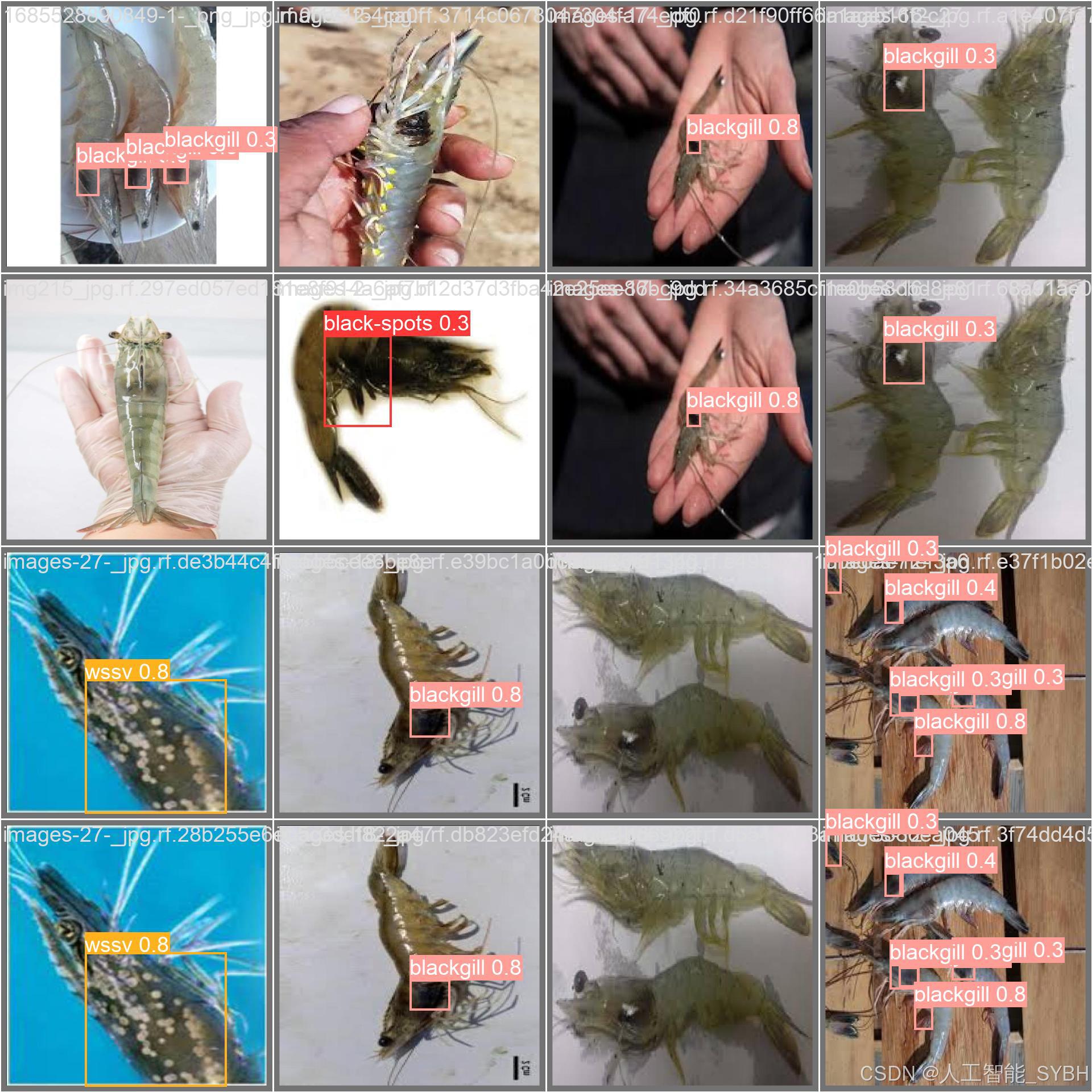虾类养殖是全球水产养殖业的重要组成部分,但虾类病害(如黑斑病、黑鳃病、肝胰腺苍白病、白斑综合症病毒等)严重影响了虾类的健康生长和养殖效益。传统的病害检测方法依赖于人工观察和经验判断,效率低且容易出错。基于深度学习的目标检测技术可以自动识别虾类病害,帮助养殖户及时采取防治措施,减少经济损失。
