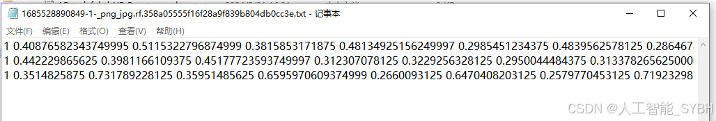 转换格式:将标注的数据转换为YOLO格式。YOLO标注格式为每行: