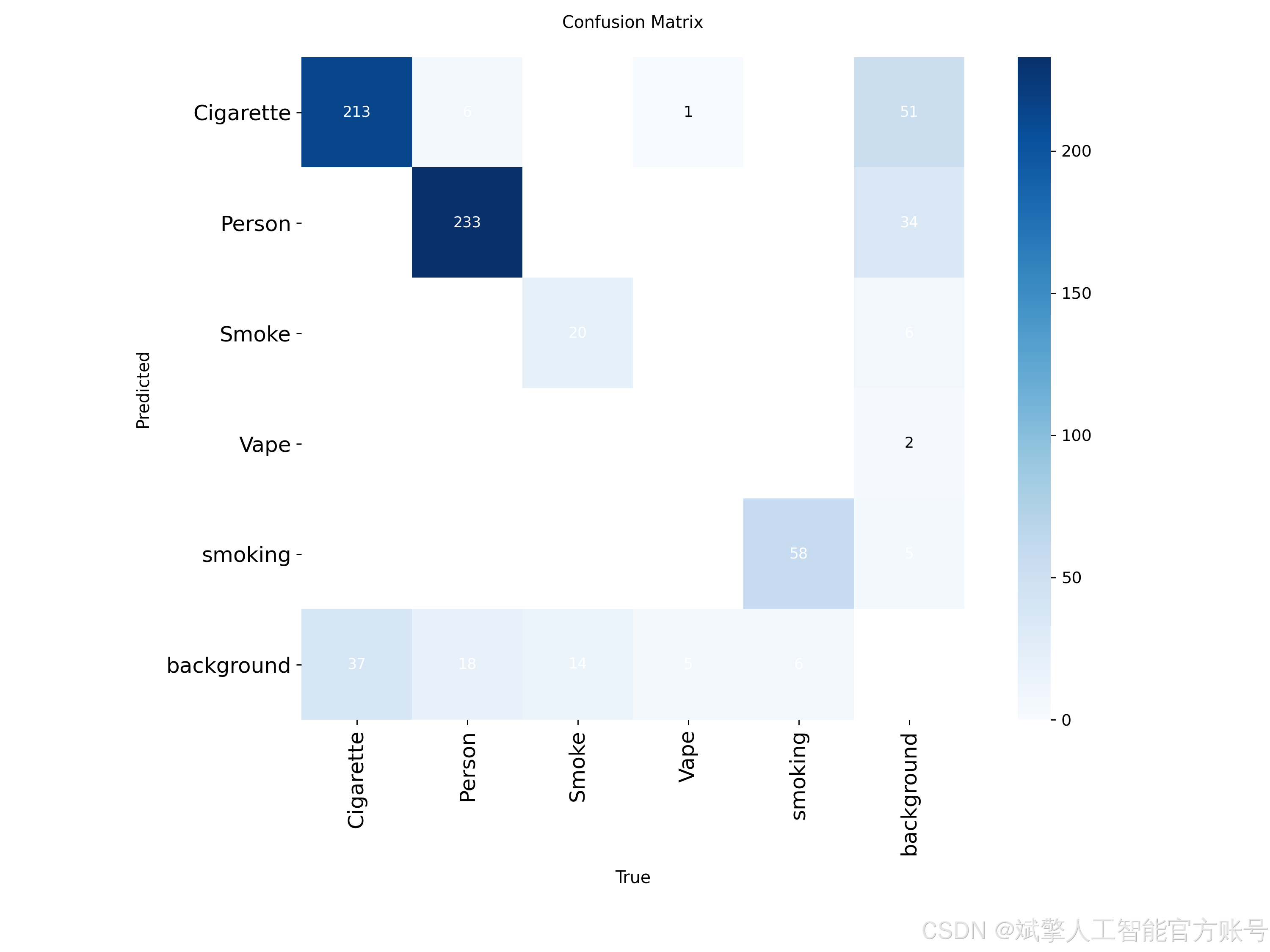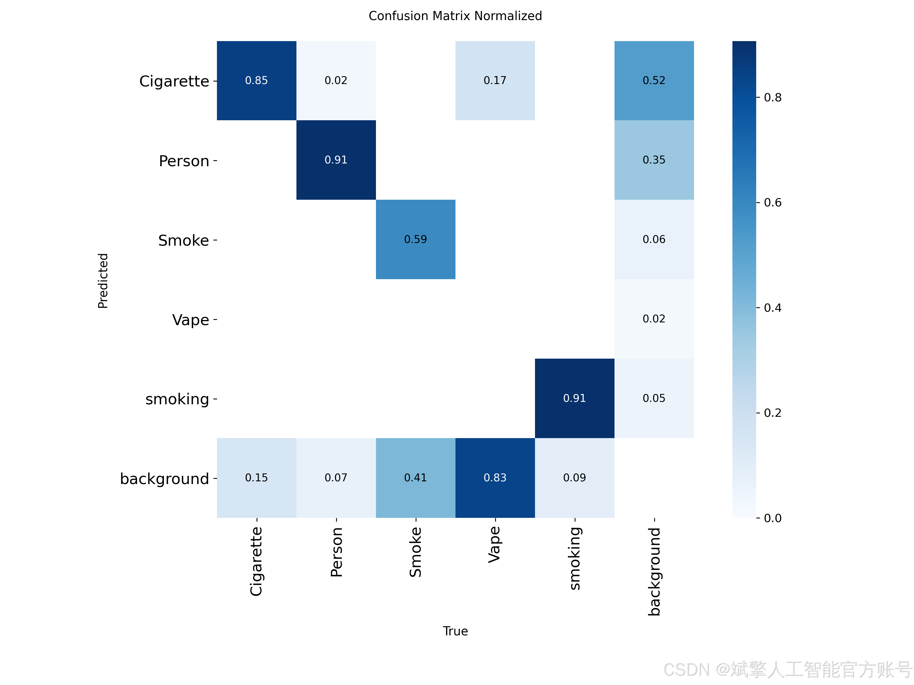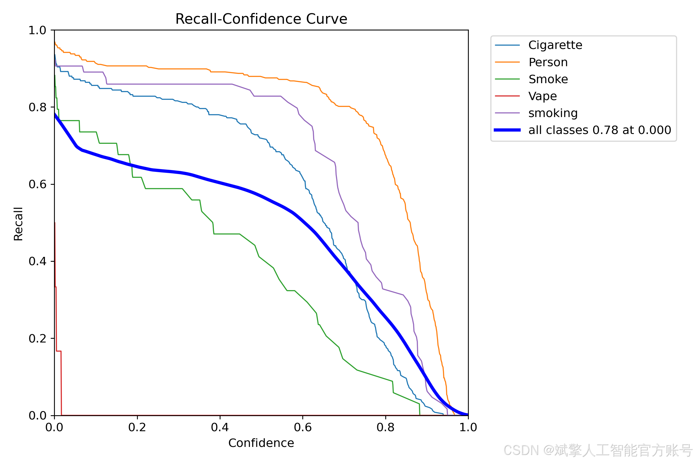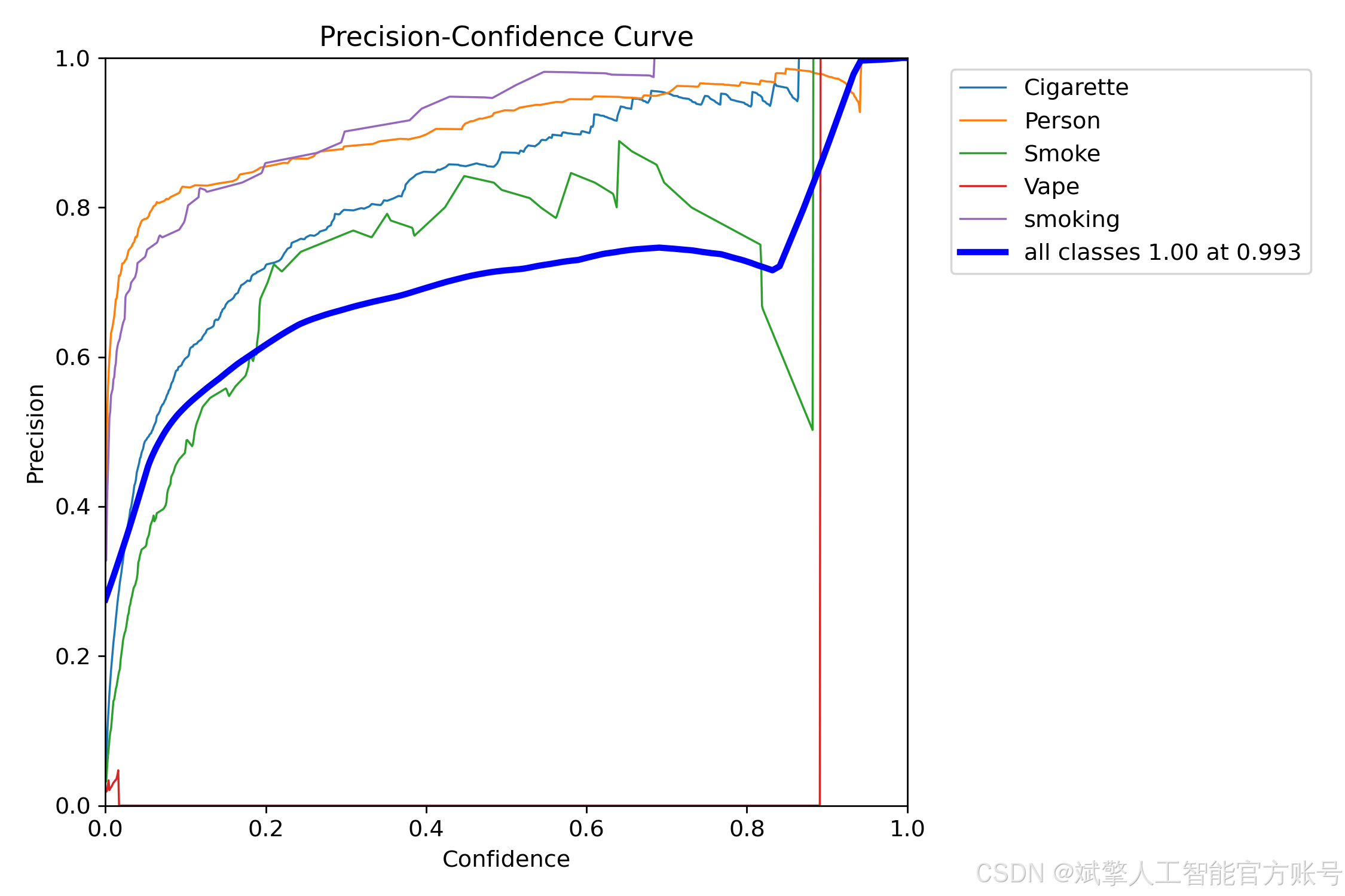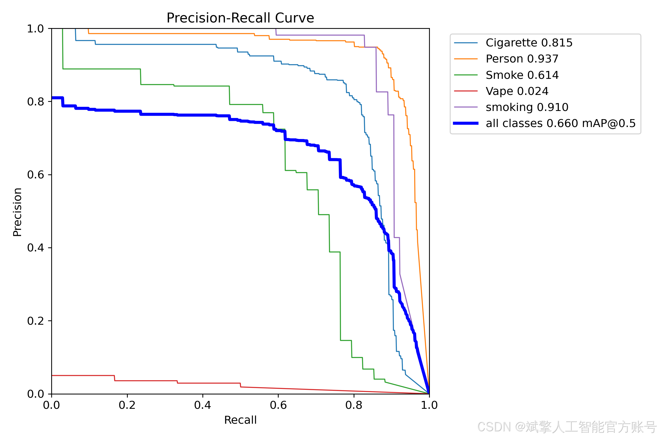 本项目旨在开发一个基于YOLOv11架构的高精度、实时吸烟行为检测系统。系统通过对监控画面或图像进行端到端的分析,能够精准识别并定位五种关键目标:香烟(Cigarette)、人(Person)、烟雾(Smoke)、电子烟(Vape) 以及综合性的吸烟行为(smoking)。该模型在包含超过12,000张标注图像的数据集上进行了充分训练,展现出强大的特征学习与泛化能力。此类技术可广泛应用于安全生产监控、公共场所禁烟监管、智能安防等领域,为自动化违规行为识别提供有效的技术解决方案,助力实现智能化管理。