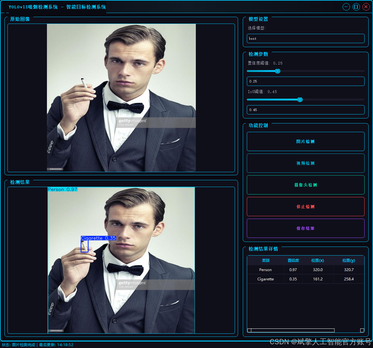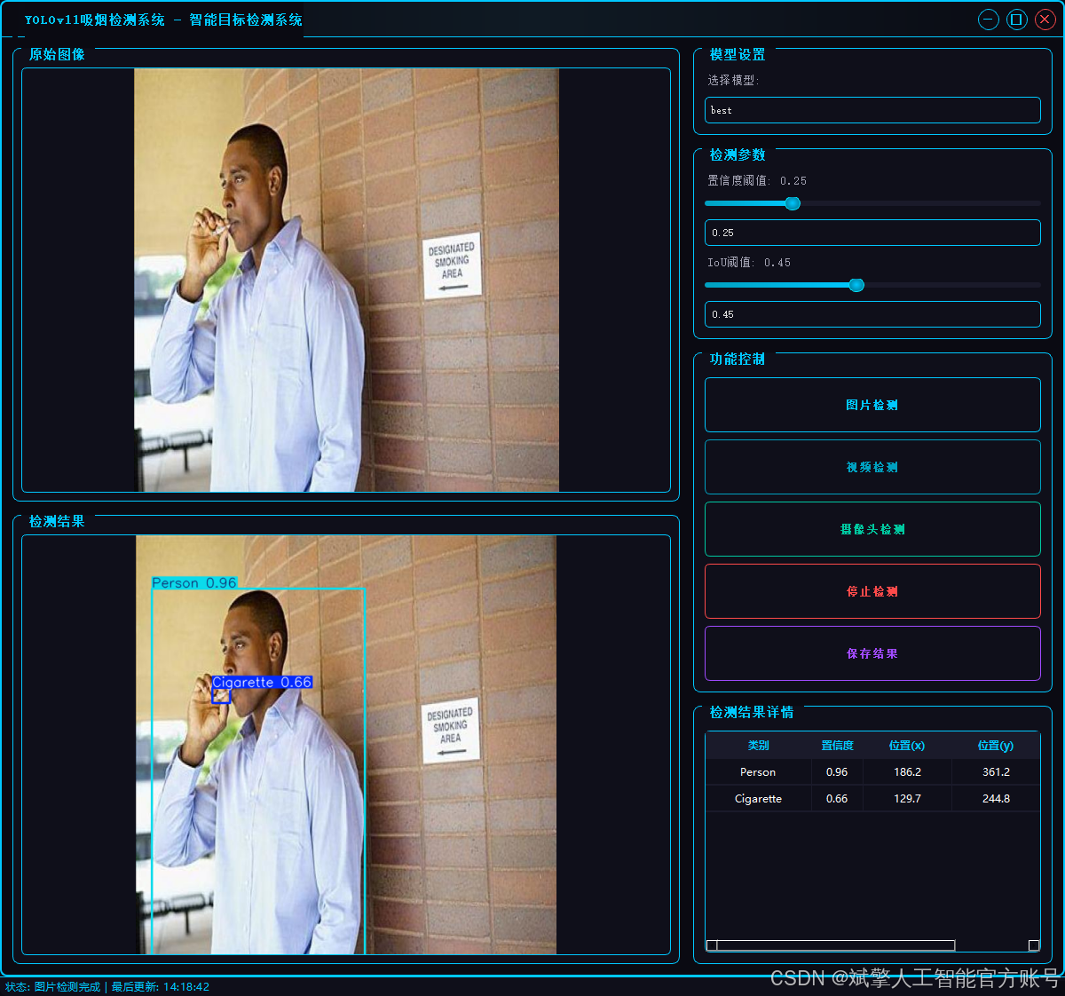 基于深度学习YOLOv11的吸烟识别检测系统(YOLOv11+YOLO数据集+UI界面+登录注册界面+Python项目源码+模型)