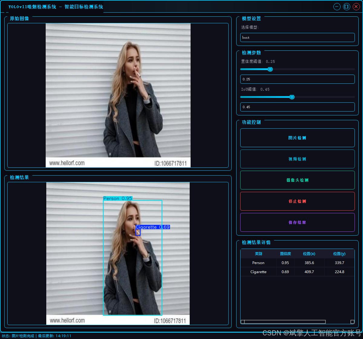 基于深度学习YOLOv11的吸烟识别检测系统(YOLOv11+YOLO数据集+UI界面+登录注册界面+Python项目源码+模型)_哔哩哔哩_bilibili