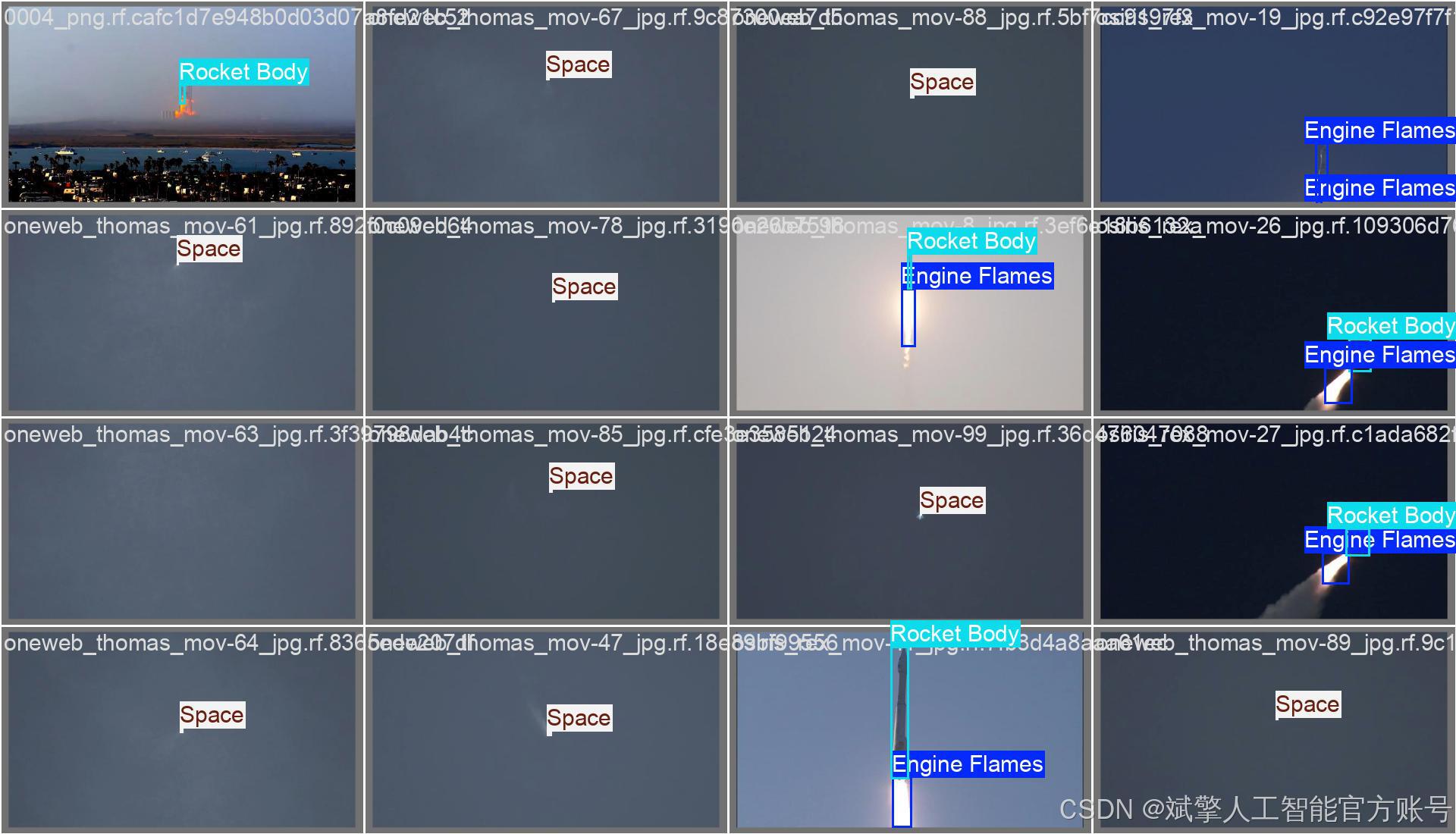 本项目的成功很大程度上依赖于一个大规模、精细标注的专用火箭检测数据集。该数据集旨在覆盖火箭发射全过程的各种视觉场景,确保模型的泛化能力和准确性。