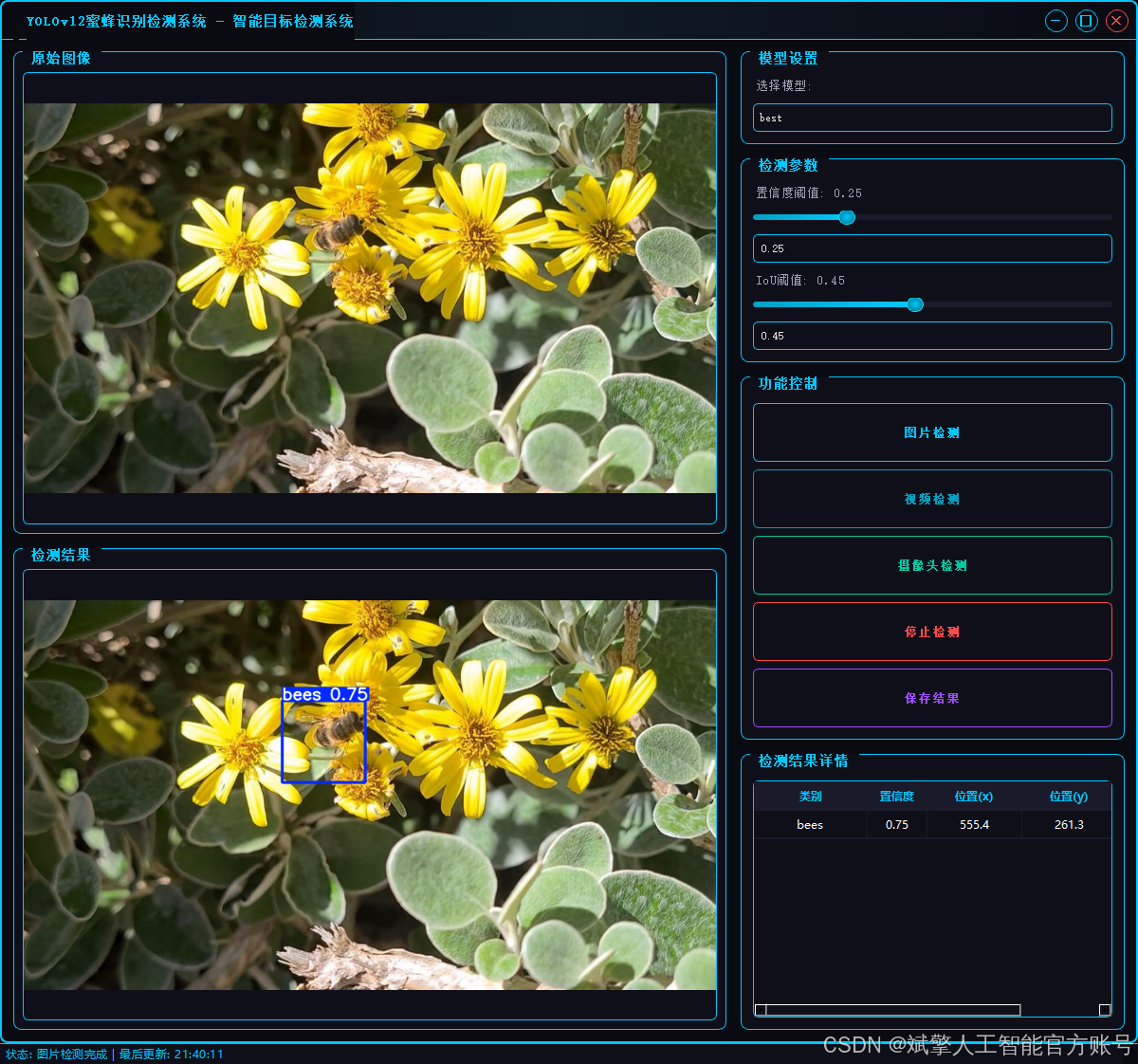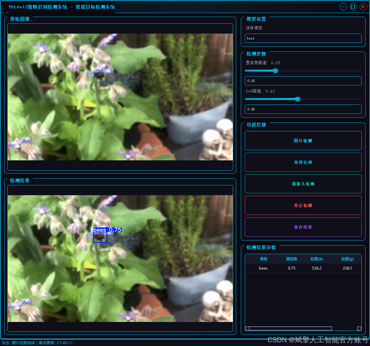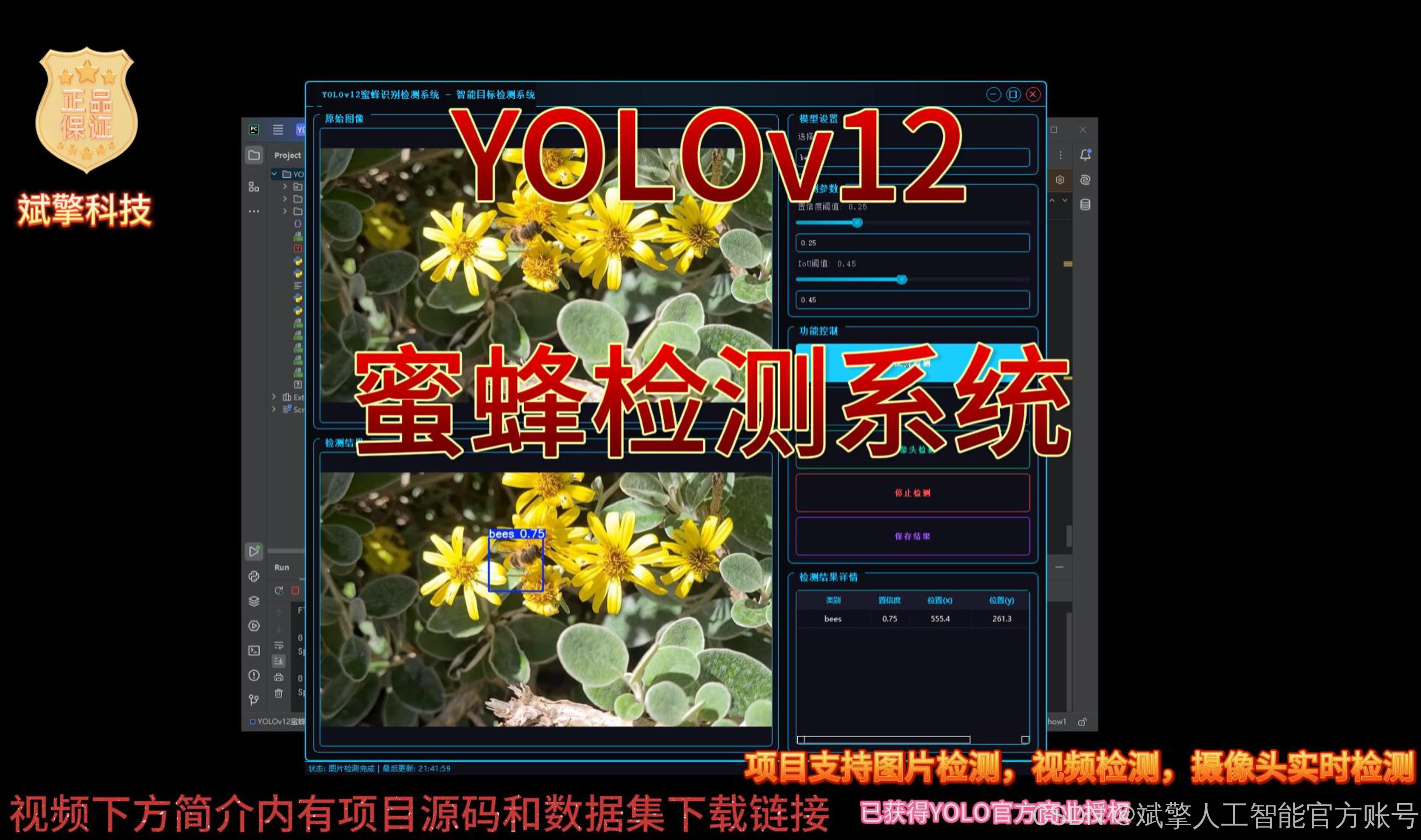 基于深度学习YOLOv12的蜜蜂识别检测系统(YOLOv12+YOLO数据集+UI界面+登录注册界面+Python项目源码+模型)_哔哩哔哩_bilibili