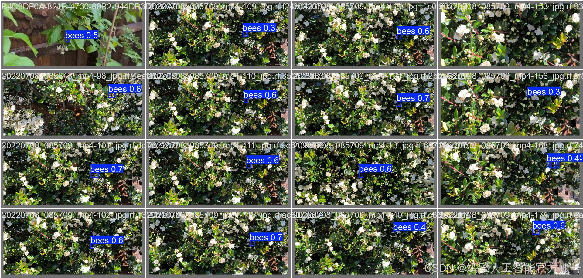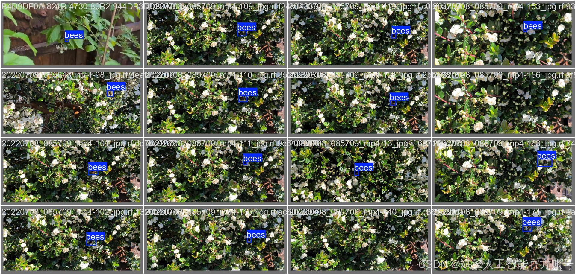 bees)。类别标签names: ['bees'],类别数量nc: 1。这种单一性使得模型能够集中学习蜜蜂的精准特征,避免多类别间的干扰。 -
