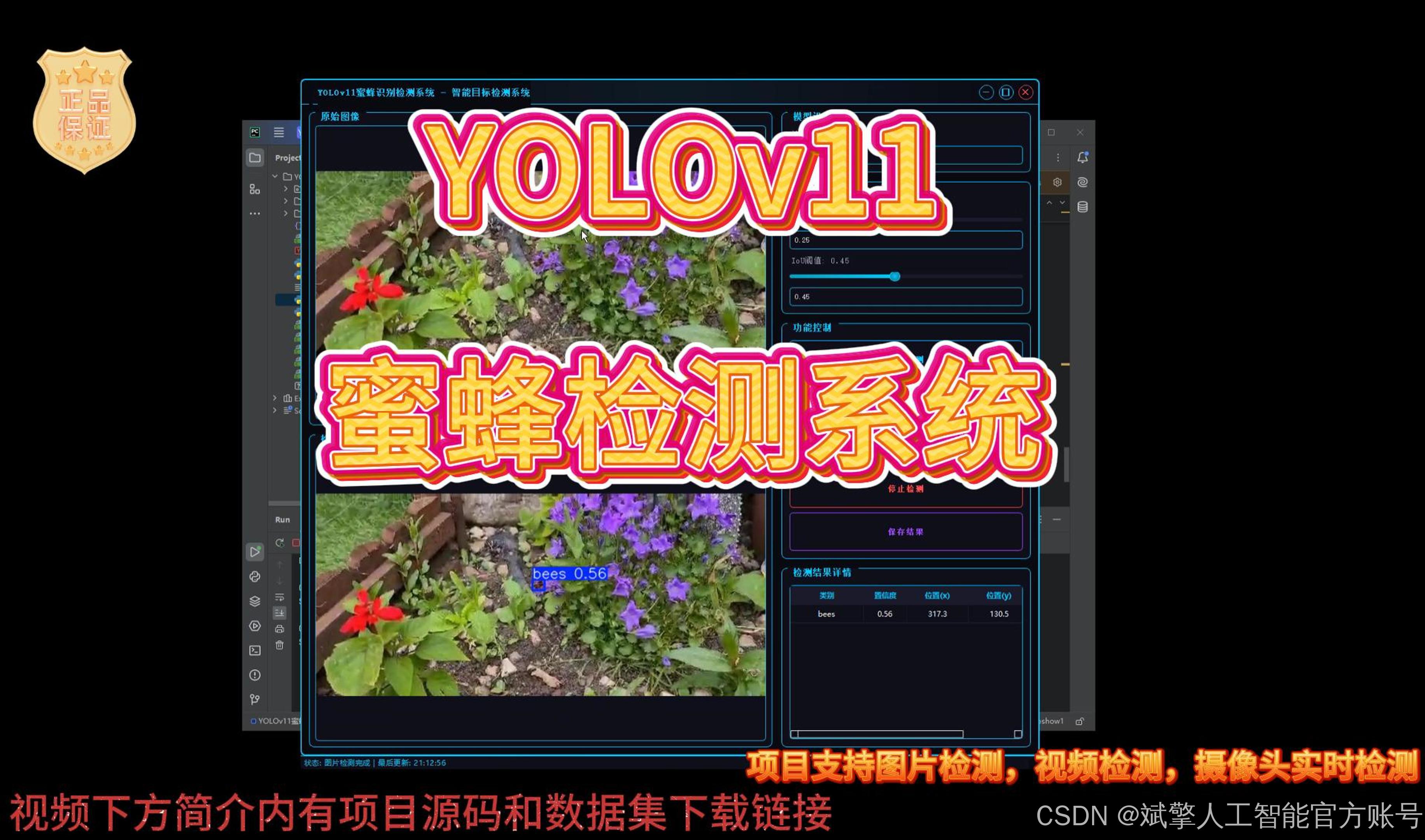 基于深度学习YOLOv11的蜜蜂识别检测系统(YOLOv11+YOLO数据集+UI界面+登录注册界面+Python项目源码+模型)_哔哩哔哩_bilibili