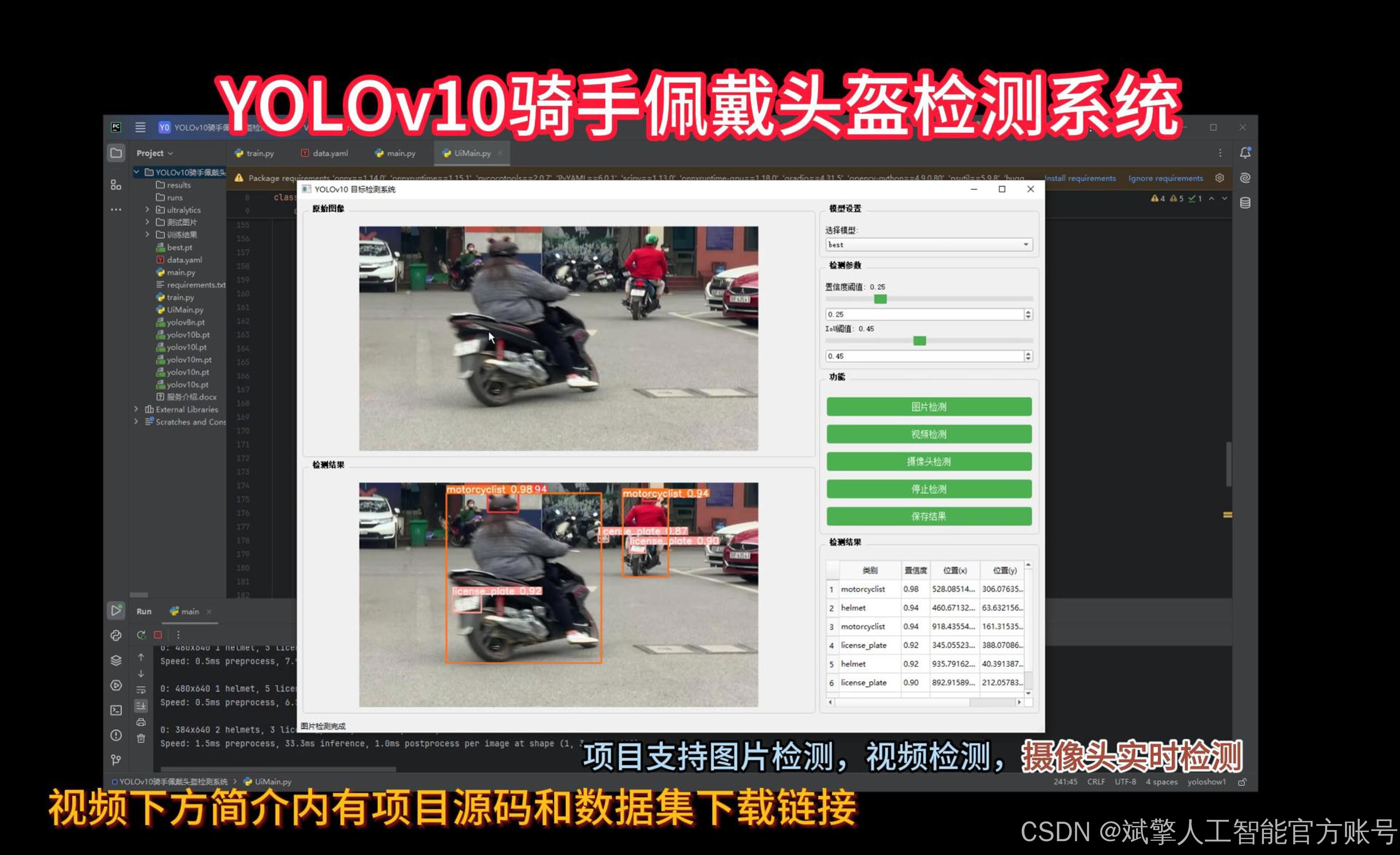 基于深度学习YOLOv10的骑手佩戴头盔识别检测系统(YOLOv10+YOLO数据集+UI界面+Python项目源码+模型)_哔哩哔哩_bilibili