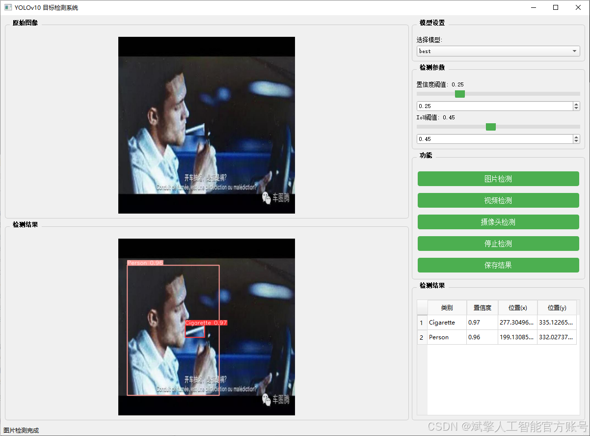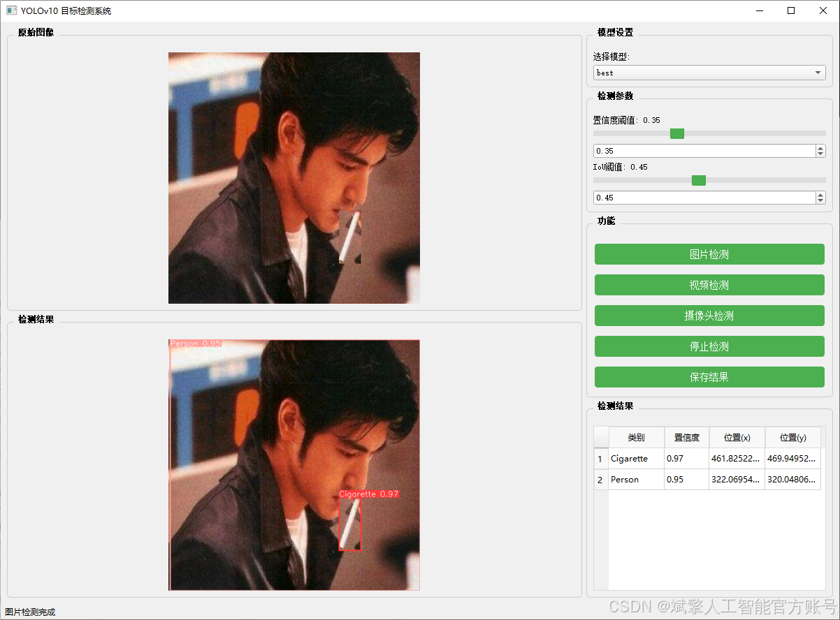 基于深度学习YOLOv10的吸烟识别检测系统(YOLOv10+YOLO数据集+UI界面+Python项目源码+模型)