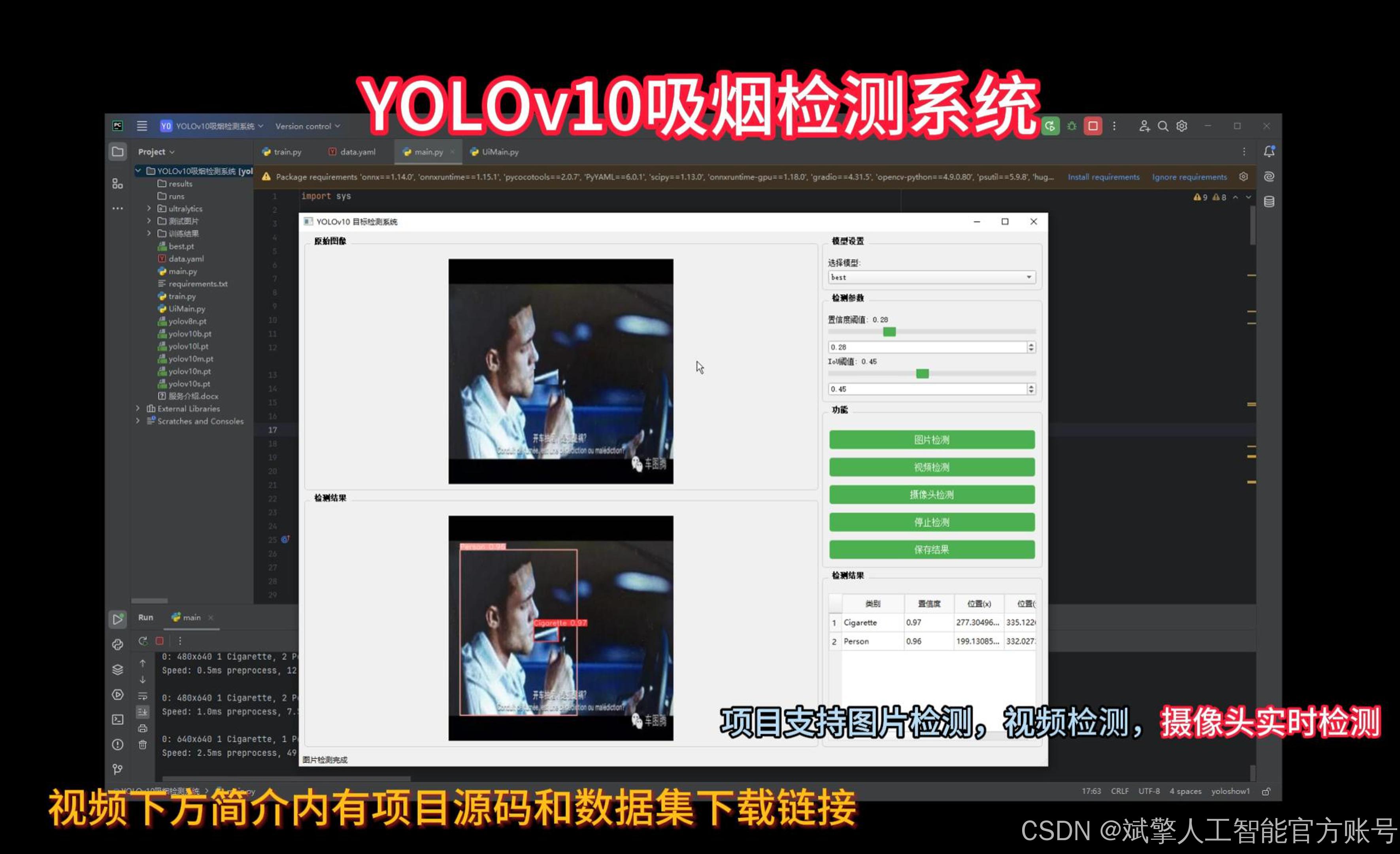 基于深度学习YOLOv10的吸烟识别检测系统(YOLOv10+YOLO数据集+UI界面+Python项目源码+模型)_哔哩哔哩_bilibili