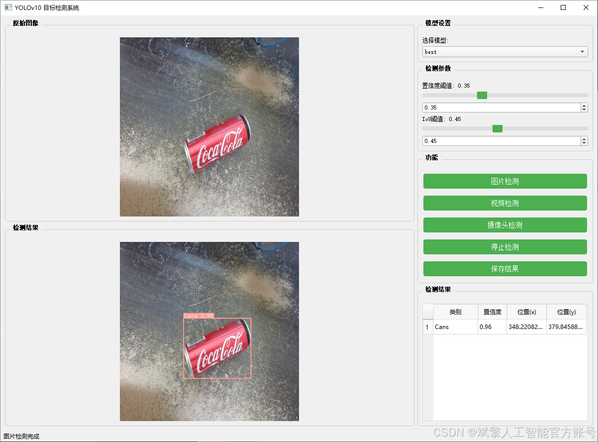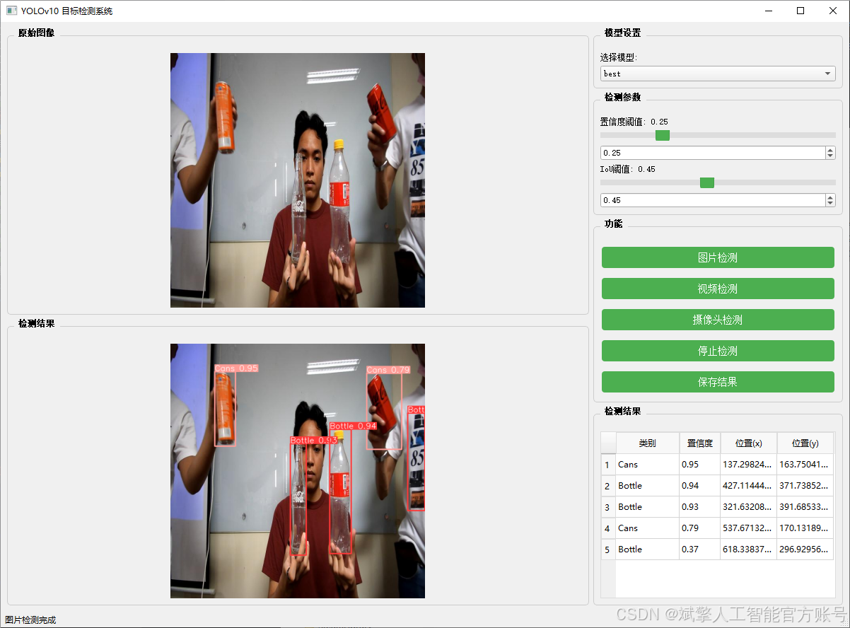 本项目基于YOLOv10目标检测算法开发了一套针对固体废物的智能识别系统,专门用于检测和分类两类常见的可回收物品:塑料瓶(Bottle)和金属罐(Cans)。系统采用最新的YOLOv10模型架构,在保持高推理速度的同时显著提升了检测精度,能够有效应对复杂环境下的废物识别任务,如光照变化、遮挡及多尺度目标等挑战。该项目具备模型轻量化、部署便捷的特点,可集成于智能垃圾桶、工业分拣流水线或环保监测平台中,为实现废物自动化分类与回收提供可靠的技术支持,具有明确的环保应用价值和商业化前景。