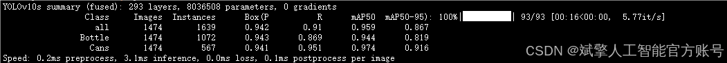 --batch 64:每批次64张图像。--epochs 500:训练500轮。--datasets/data.yaml:数据集配置文件。--weights yolov10s.pt:初始化模型权重,yolov10s.pt是预训练的轻量级YOLO模型。