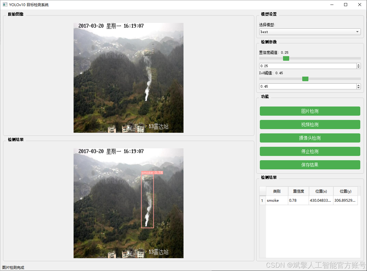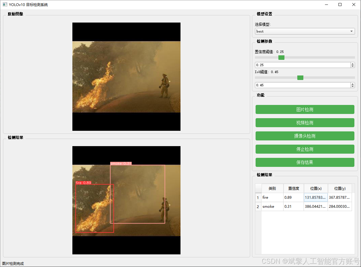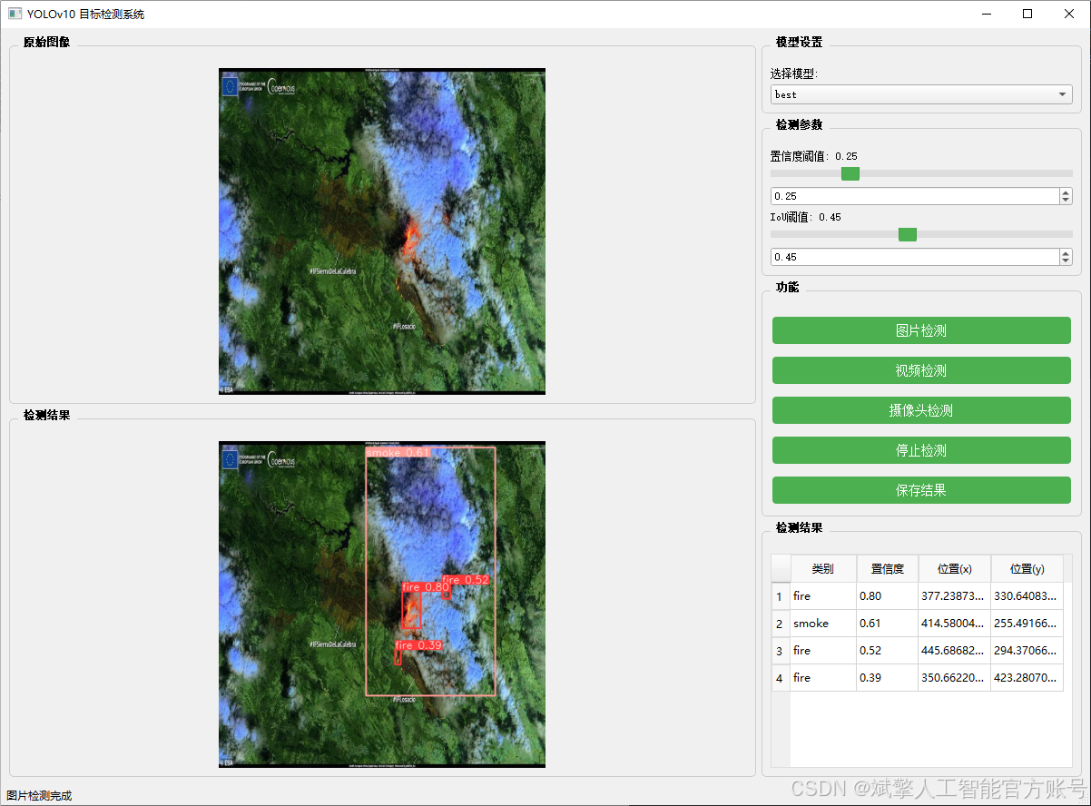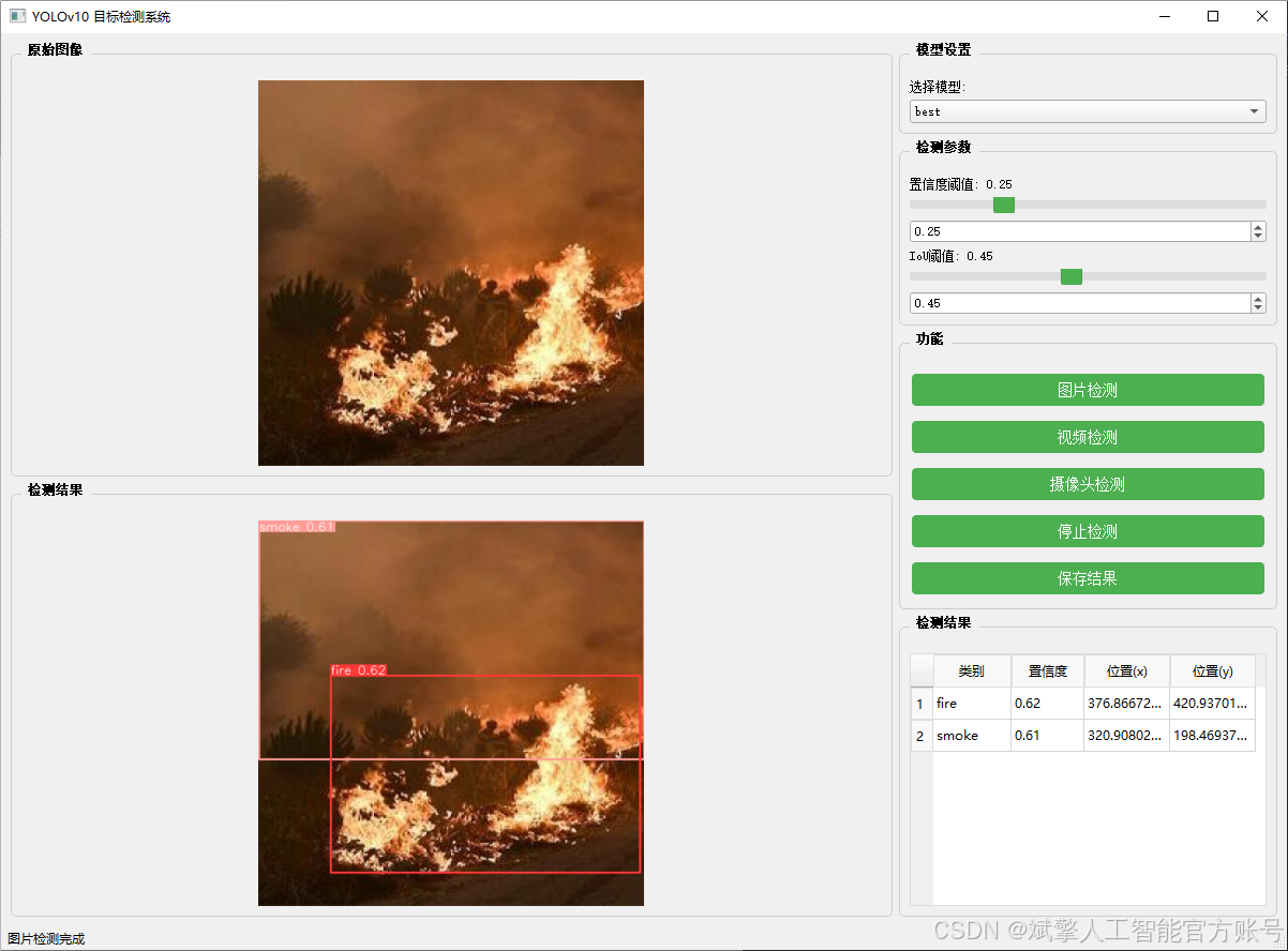 基于深度学习YOLOv10的森林火灾烟雾识别检测系统(YOLOv10+YOLO数据集+UI界面+Python项目源码+模型)