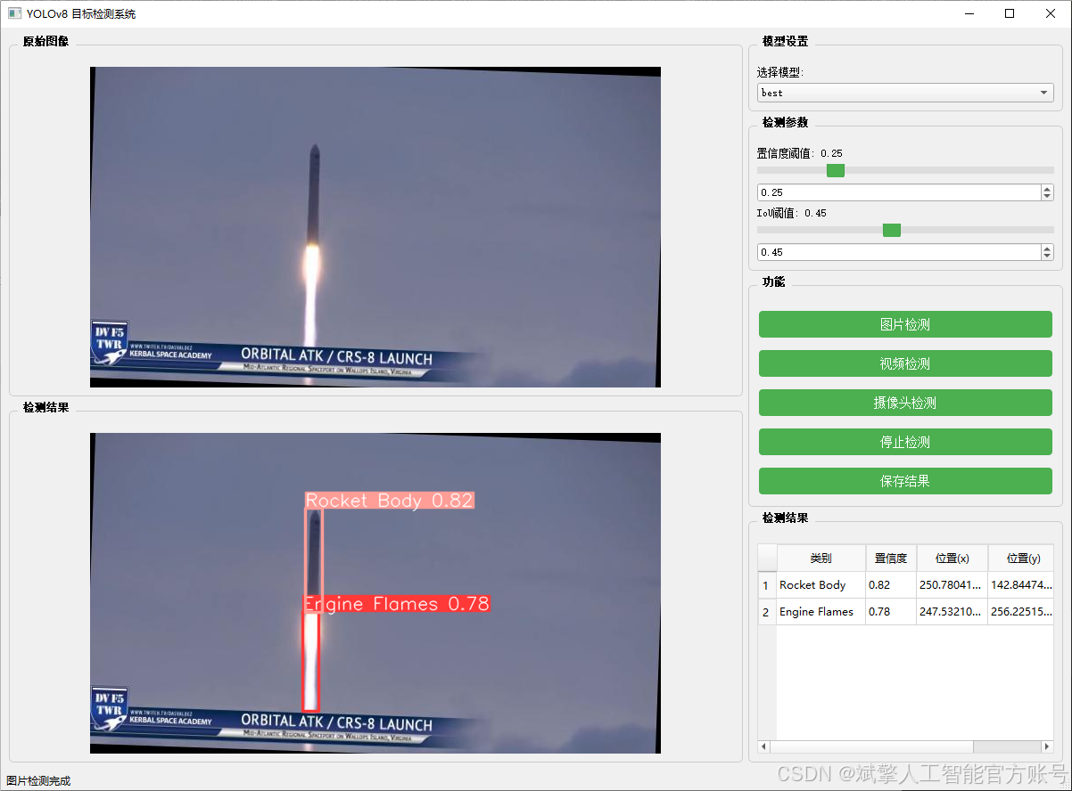 基于深度学习YOLOv8的火箭检测系统(YOLOv8+YOLO数据集+UI界面+Python项目源码+模型)
