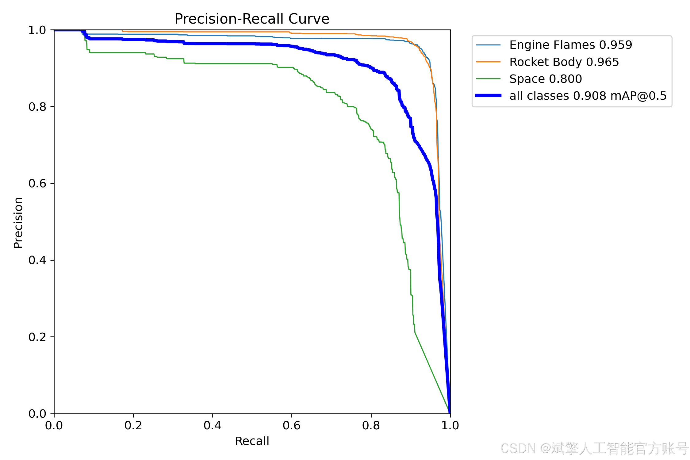 本项目基于YOLOv8框架开发,专注于火箭发射场景中的多目标检测任务,共定义三个检测类别:发动机火焰(Engine Flames)、火箭箭体(Rocket Body)和太空背景(Space)。模型通过端到端的训练实现了对火箭关键部件的实时定位与识别,能够有效支持航天发射监测、视频分析等实际应用场景。项目采用PyTorch深度学习框架。