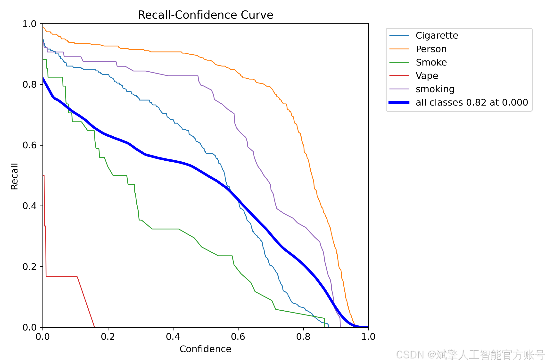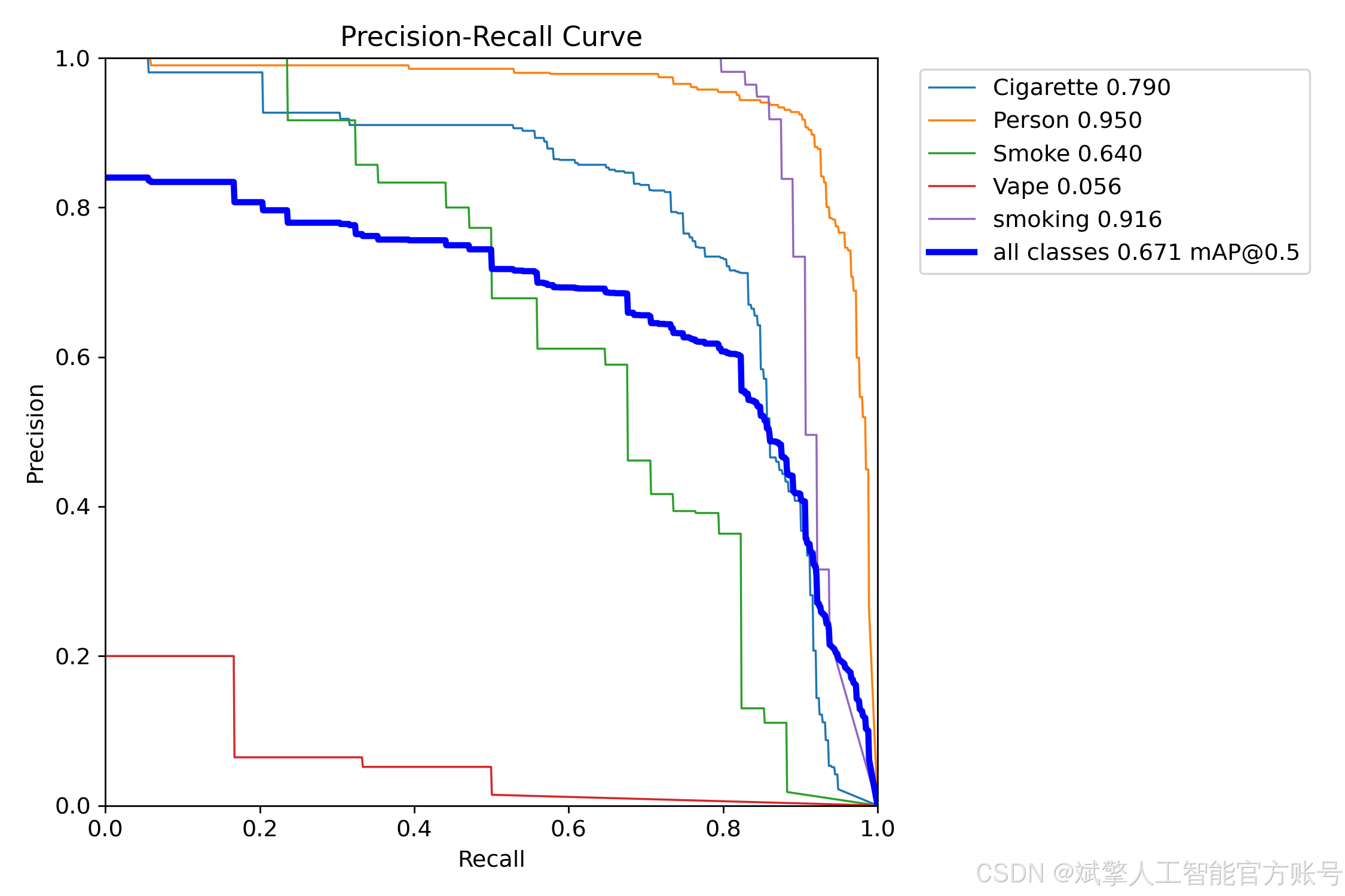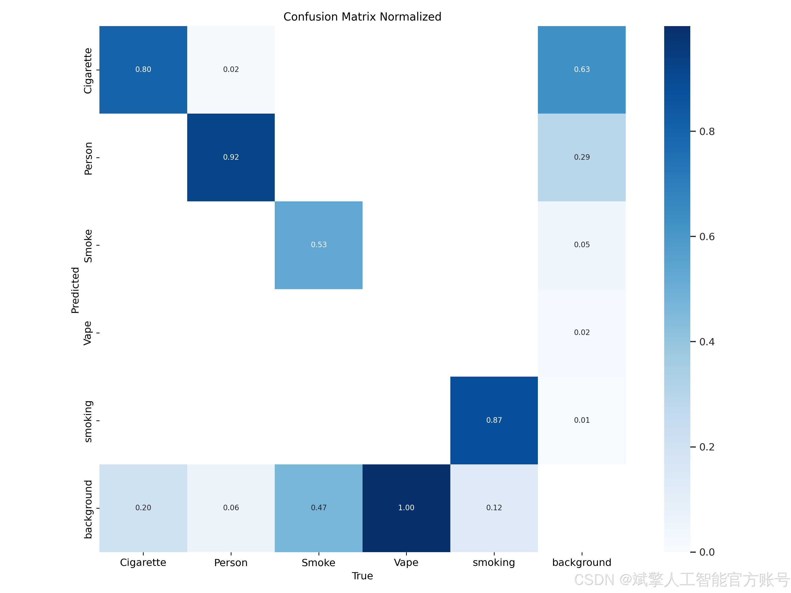 本项目基于YOLOv8目标检测算法构建了一个吸烟行为识别系统,旨在精准检测吸烟相关目标。模型共支持五类目标检测:香烟(Cigarette)、人体(Person)、烟雾(Smoke)、电子烟(Vape)以及吸烟动作(smoking),通过多目标协同检测提升吸烟行为识别的准确性与可靠性。该系统可应用于公共场所智能监控、安全生产管理等场景,实现对吸烟行为的自动化实时监测与预警。