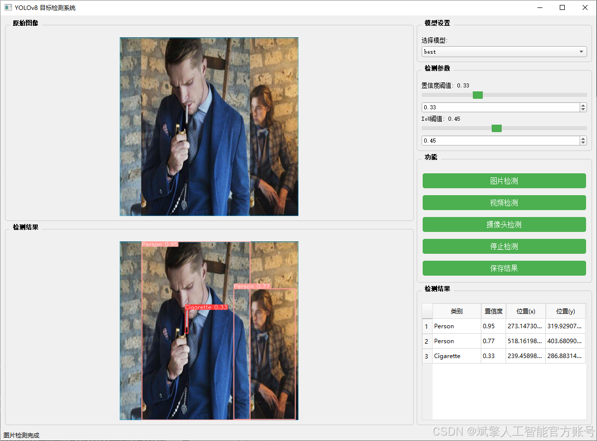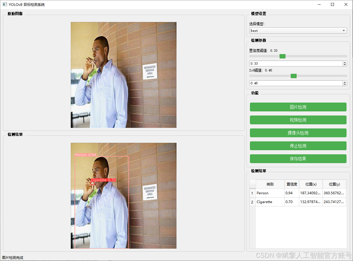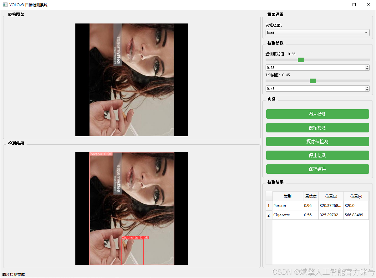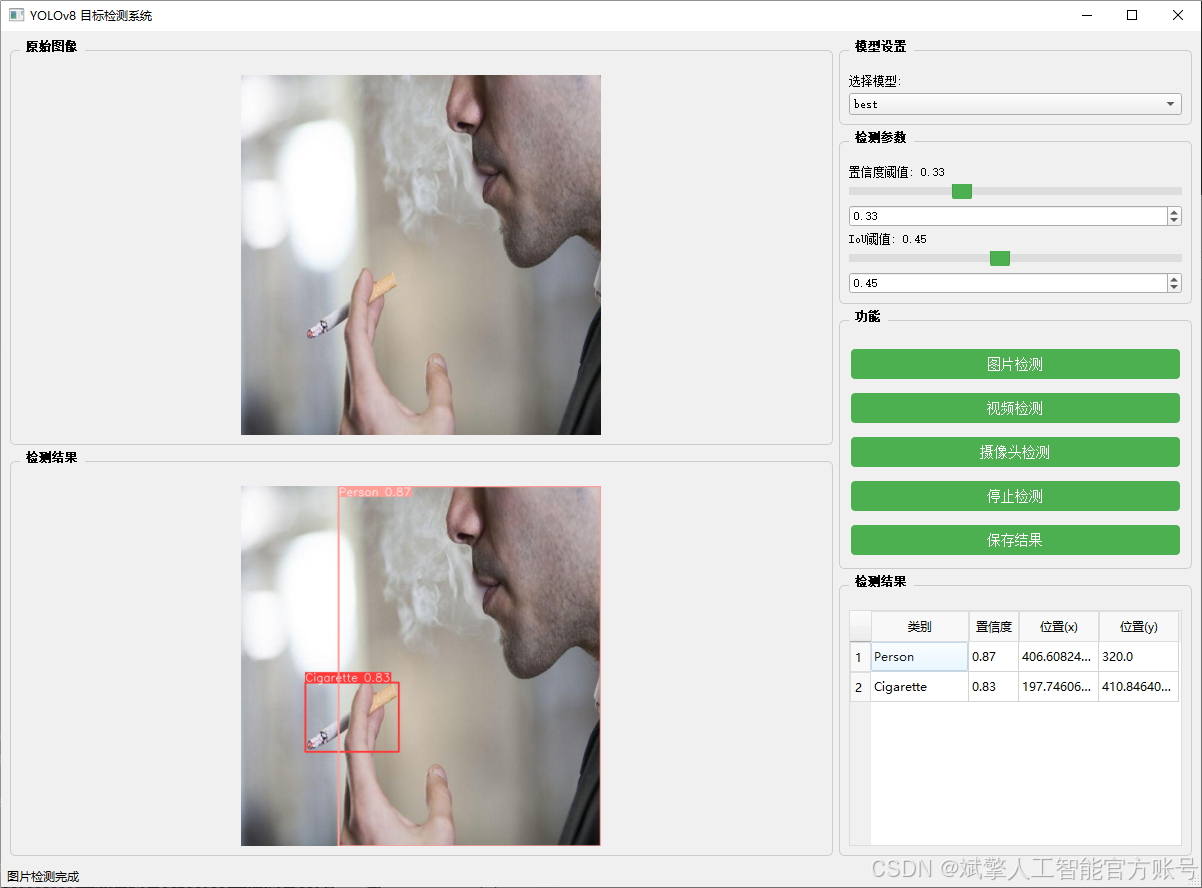 基于深度学习YOLOv8的吸烟识别检测系统(YOLOv8+YOLO数据集+UI界面+Python项目源码+模型)