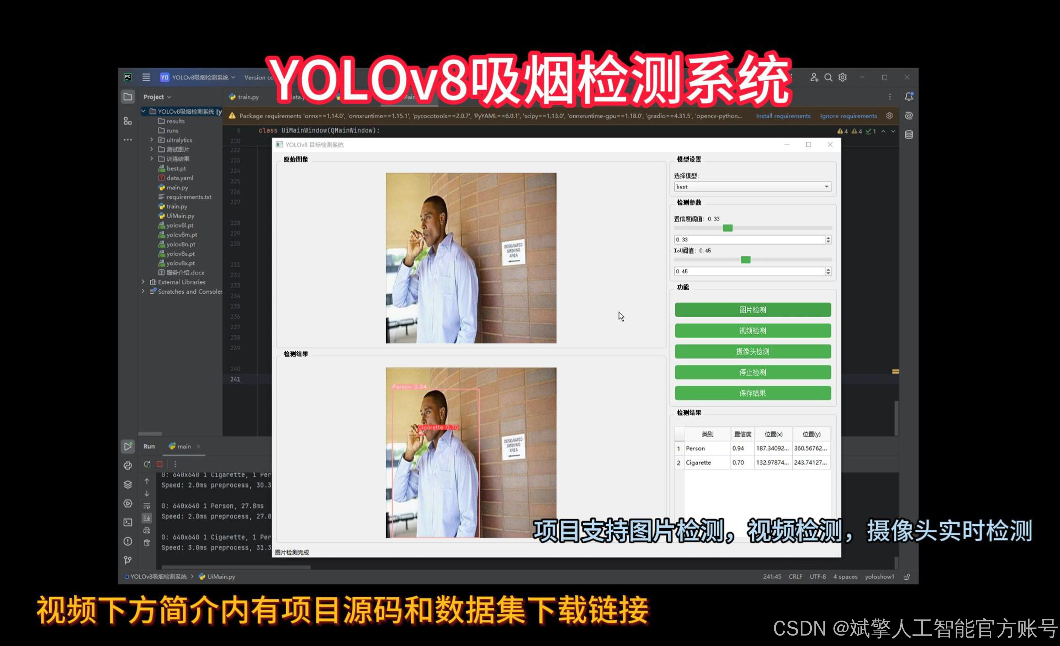基于深度学习YOLOv8的吸烟识别检测系统(YOLOv8+YOLO数据集+UI界面+Python项目源码+模型)_哔哩哔哩_bilibili